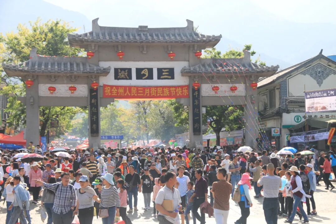 三月街是云南西部最古老繁荣的白族贸易集市,也是白族最隆重盛大的节日,每年这个时节大理各区的人们都会聚集于此,一同狂欢。七天集会结束后,每月初二、初九、十六、二十三,这里则成为了周边居民售卖本土特产,民族美食的小型集市。
