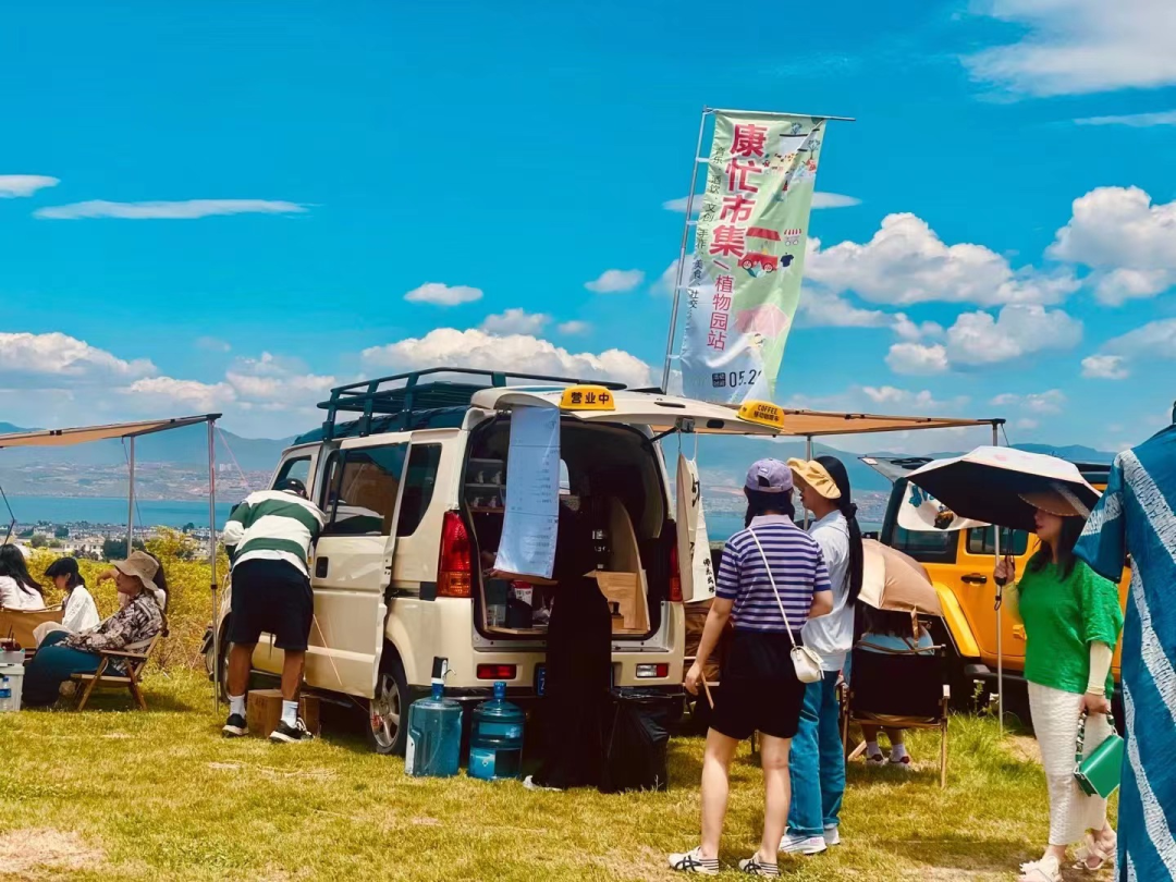 集市坐落于苍山植物园,这里植被丰美,园林景观各有特色,集市坐落在一片嫩绿的草地之上,可以远眺洱海美景。