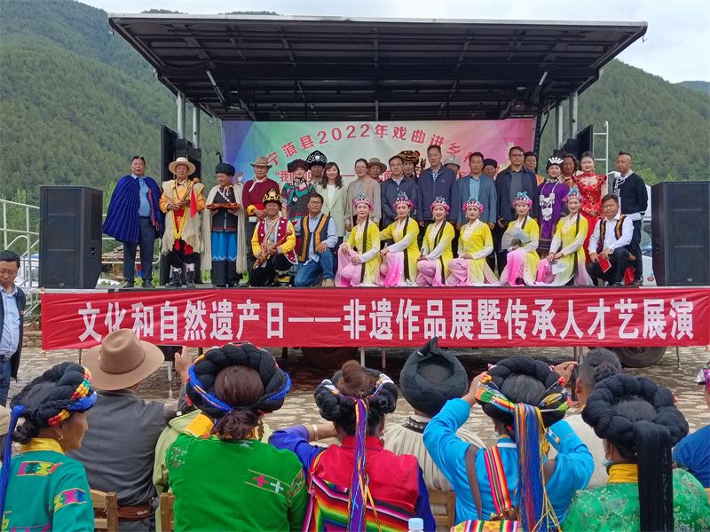 为充分发挥党建引领和党员的先锋模范带头作用,在宁蒗彝族自治县文化和旅游局党组、党总支的正确领导下,县文化馆党支部认真组织文化馆、民族文化工作队开展2022年宁蒗彝族自治县“我们的中国梦·七彩云南情”戏曲进乡村文化进万家系列活动。此次活动自2022年4月下旬启动至今,已在宁蒗县南片8个乡镇进行49场演出。