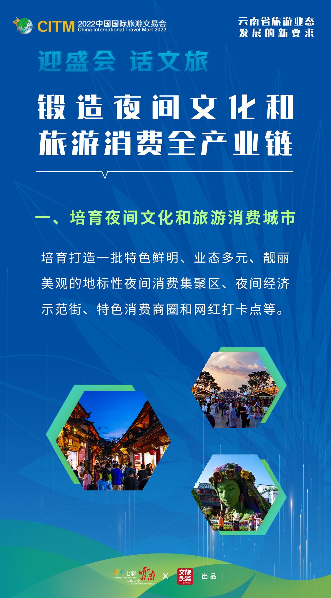 迎盛会 话文旅 | 图解云南省旅游业态发展的新要求 ©原创 2022-07-18 18:44 0 在2022中国国际旅游交易会即将到来之际,文旅头条新闻网推出“迎盛会 话文旅”系列宣传海报,展现云南文化旅游产业发展亮点、发展成就,助推旅游市场加快恢复发展。 策划:李文女 孟鹏 设计:何瑜阳吟 责编 刘榕杉 审核 华芳