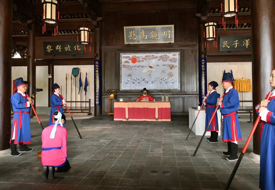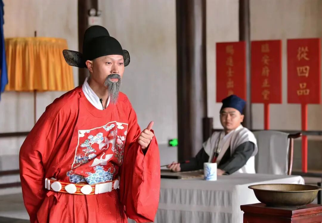 学子簪花游临安,登榜转身换官服。临安府署知府亲临府衙门口,迎接金榜题名、衣锦还乡的临安学子归来,邀请各位优秀学子以不同角色参与体验知府判案全过程。