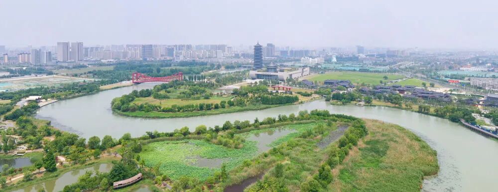 (这是2022年5月25日拍摄的扬州市运河三湾景区(无人机照片)。新华社记者 李博 摄)