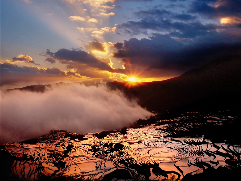 红河州展厅以“云上梯田·梦想红河”为主题,采用数字化VR技术带领观众“飞跃”哈尼梯田,领略千年哈尼梯田的壮美。