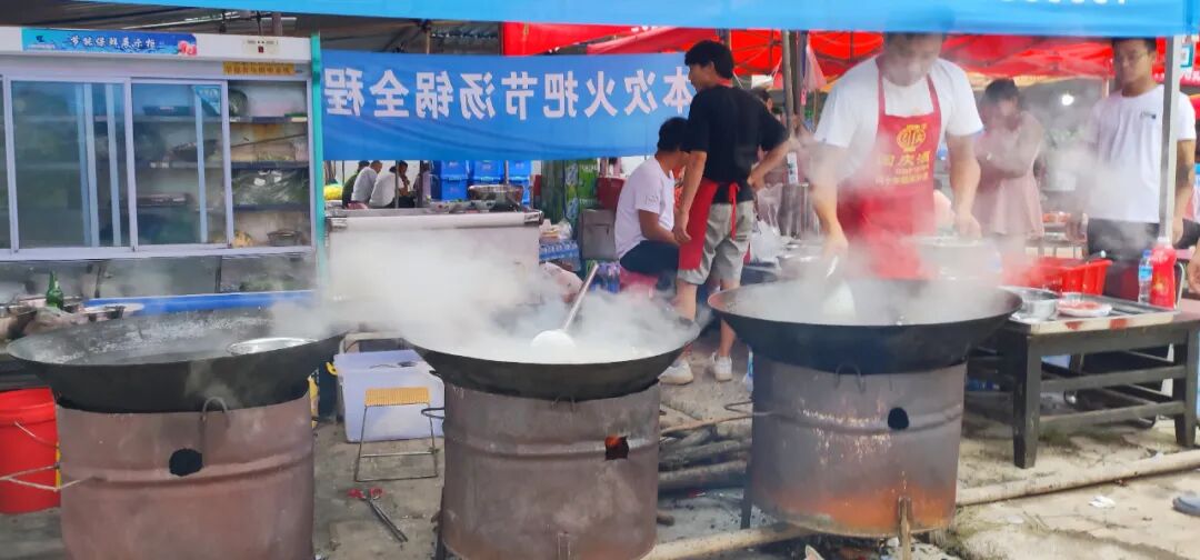 汤锅美食宴现场规模宏大,热闹非凡,成为今年火把节期间最亮眼的场景之一。一到现场,阵阵羊肉香味扑面而来,瞬间就感受到了浓浓的节日气氛。今年的火把节,有来自全县各乡镇的几百家经营户前来设点经营,各个摊位前人来人往,摊主们忙着把刚宰杀的山羊砍的砍、剁的剁,不一会儿,一盆盆香喷喷、原汁原味的羊汤锅就呈现在了餐桌上,热气腾腾的汤锅宴香飘四方。