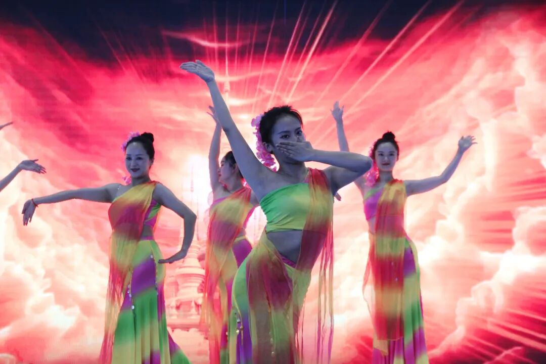 在临沧主题形象馆现场,由临沧市民族歌舞团演员们带来《加林赛》《月亮升起来》《临沧等您》等民族舞蹈激情上演。神秘的舞蹈,热情美丽的佤族姑娘让大家感受到了临沧独特的民族文化。