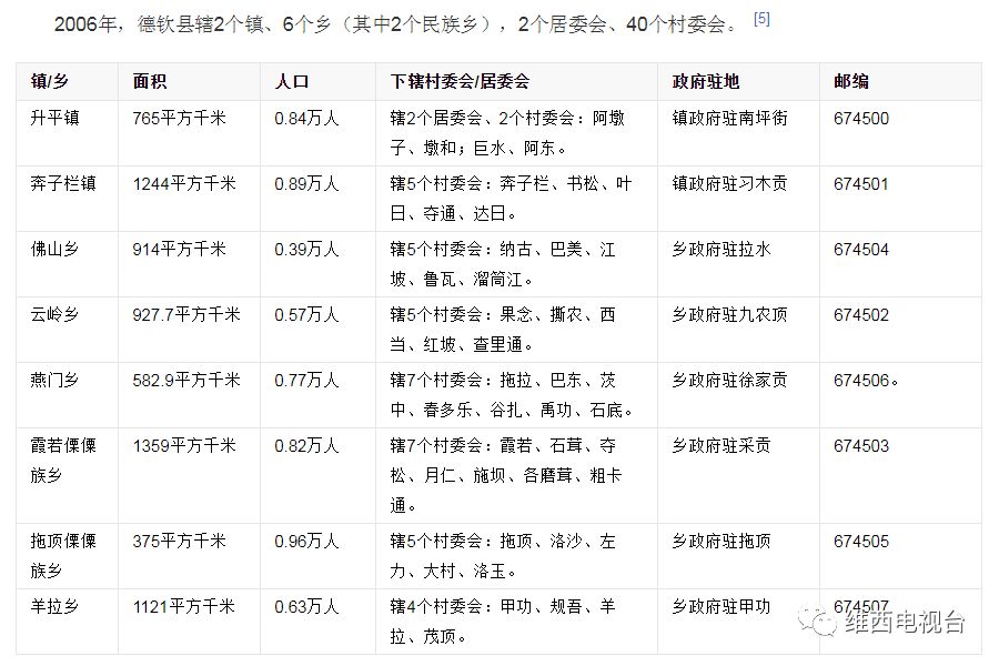 德钦基本数据