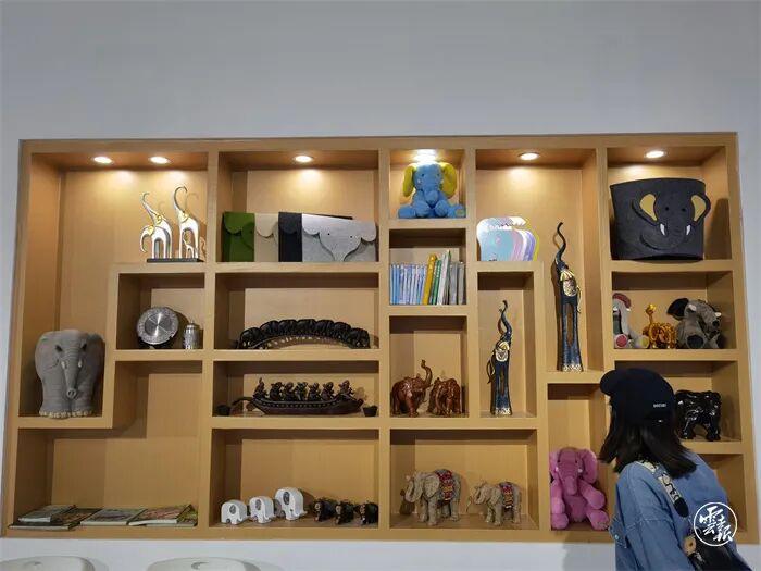 在展台里还有一面展示大象文创作品的作品墙,墙上的作品是各地的艺术家和公众人物无偿捐赠的。其中粉红色的大象玩偶是欧阳娜娜送的哦。