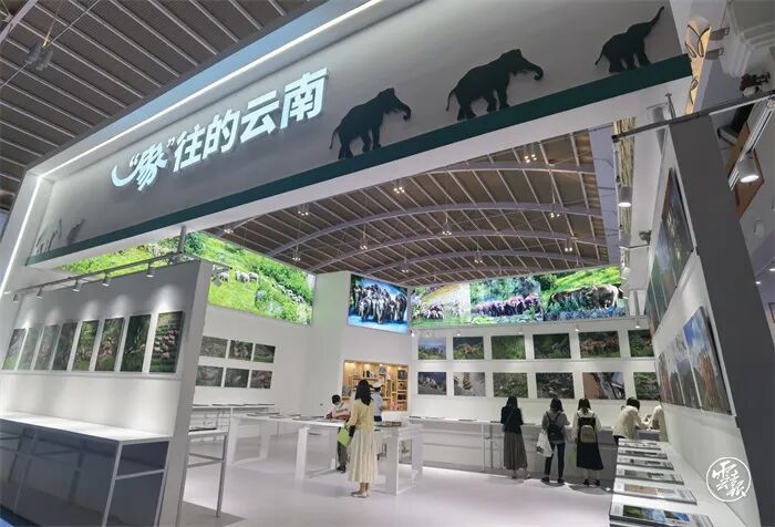 云南省文化和旅游厅、云南省森林消防总队联合推出的“象”往的云南展台,展出了5000余幅照片,100册象册科普(每一册的内容都不一样,在不同的地方拍的)。
