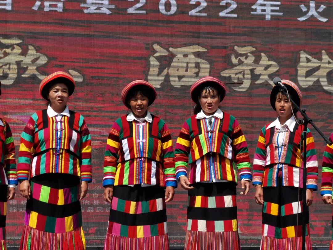 在凤家古镇举办的禄劝2022年“火把节”山歌、情歌、酒歌比赛现场,人潮涌动,激情高涨,参赛选手们跃跃欲试。下午2点,比赛正式开始,身着特色民族服饰的选手,相继登台进行了对唱、斗唱等环节对抗。演唱中,选手们反应敏捷,妙语连珠,所唱歌曲编词巧妙、内容健康、形象生动、行腔优美,将十九大精神、脱贫攻坚相关政策知识及孝老敬老的美德展现得淋漓尽致,引起观众强烈的共鸣,一时间,歌声、掌声、欢呼声、喝彩声响彻云霄。