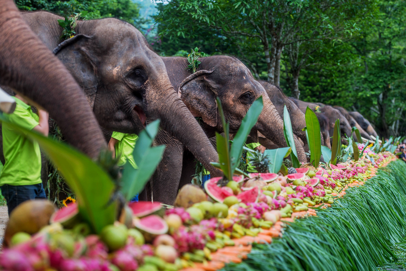(西双版纳野象谷景区大象在吃象餐 新华社 图)