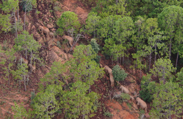 (漫游云南的亚洲象群 云南省森林消防总队 图)