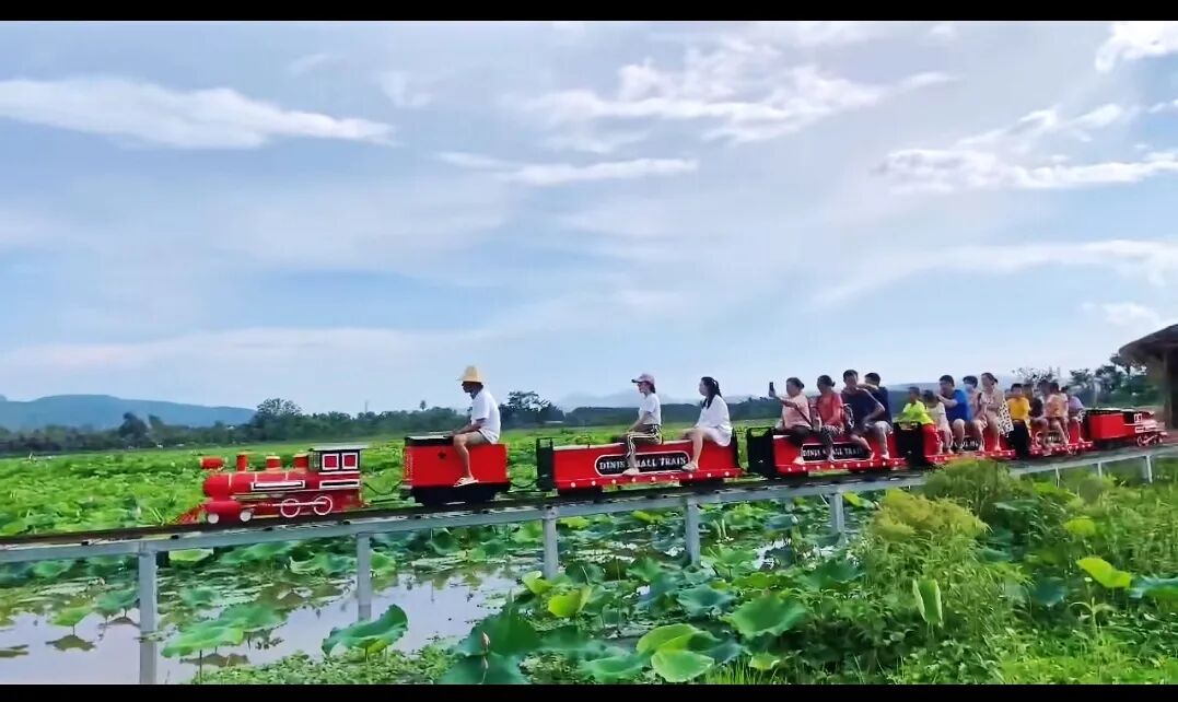 “呜呜呜~“坐上一辆迷你小火车,穿梭在百亩荷花之间。这个夏天,西双版纳傣族园推出的乘船赏荷、栈道游览等赏荷项目成了亮点。假期、周末带上家人、约着朋友到傣族园露营烧烤,感受”误入藕花深处“的惬意,观赏”接天莲叶无穷碧“的壮观。