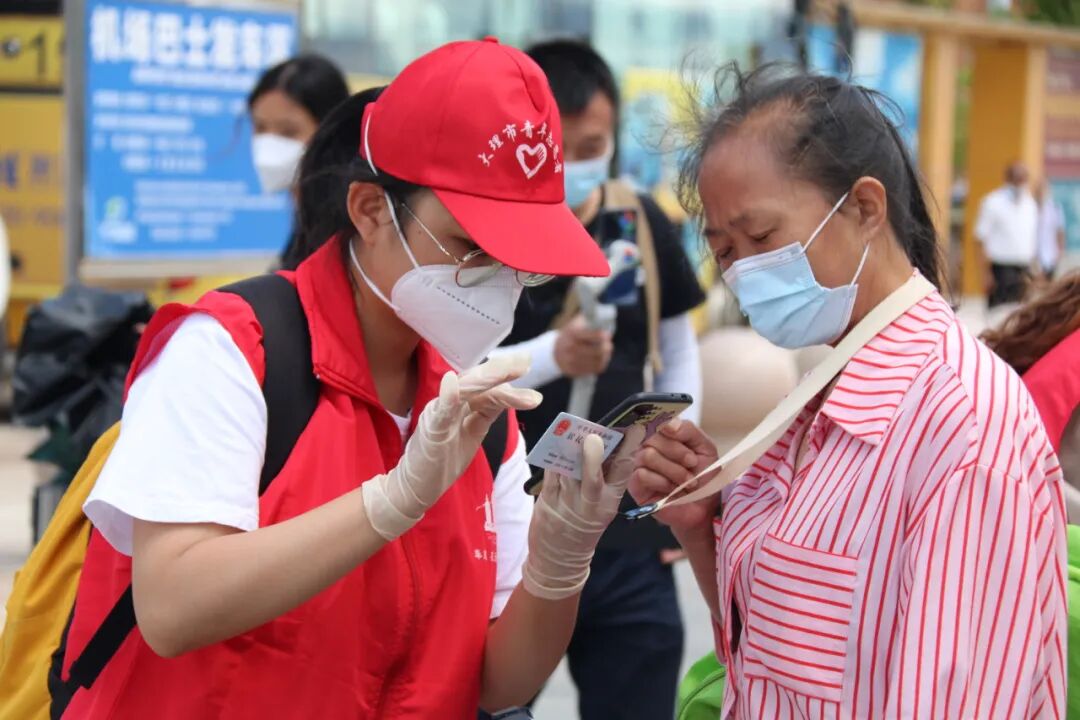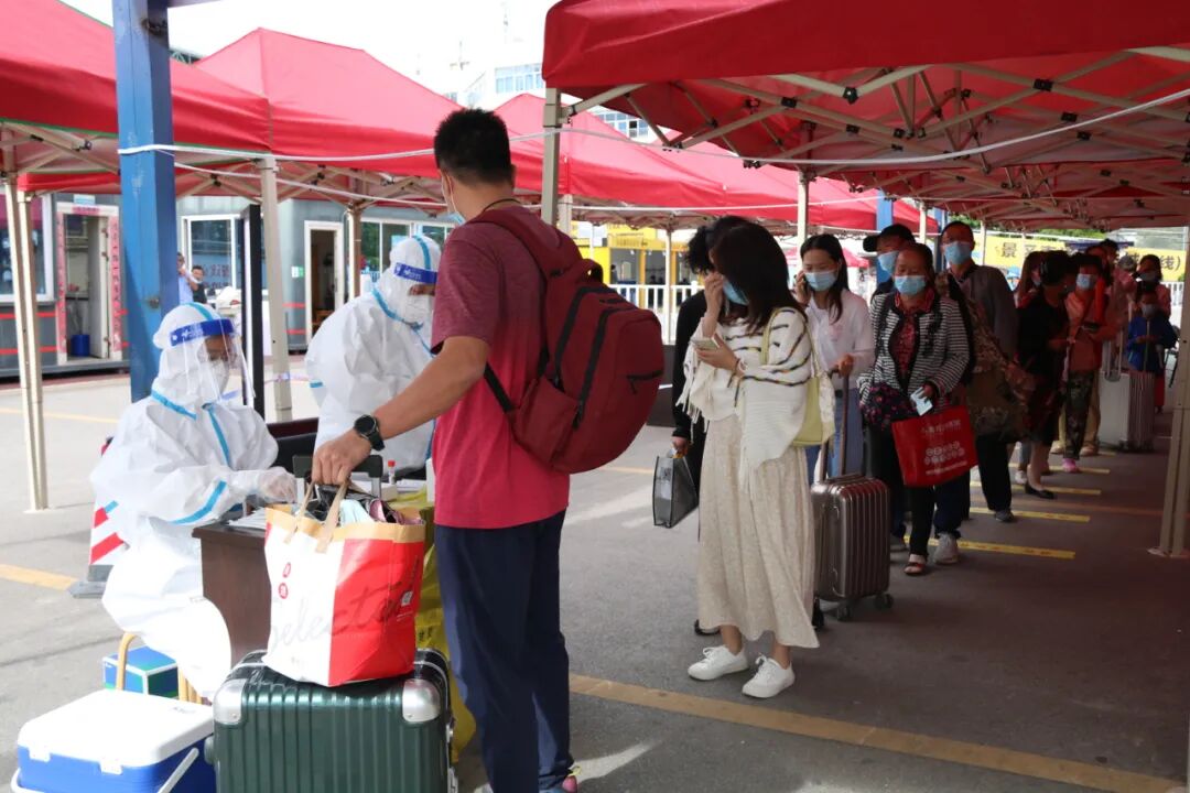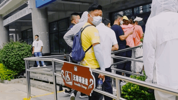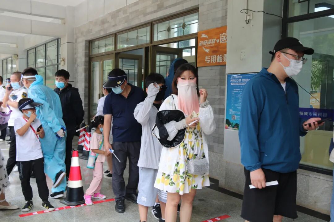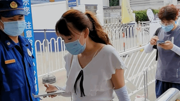 “请大家佩戴好口罩,出示两码,为了您的健康,建议核酸检测报告超过48小时的旅客,可在就近采样点,进行免费核酸混检采样……”