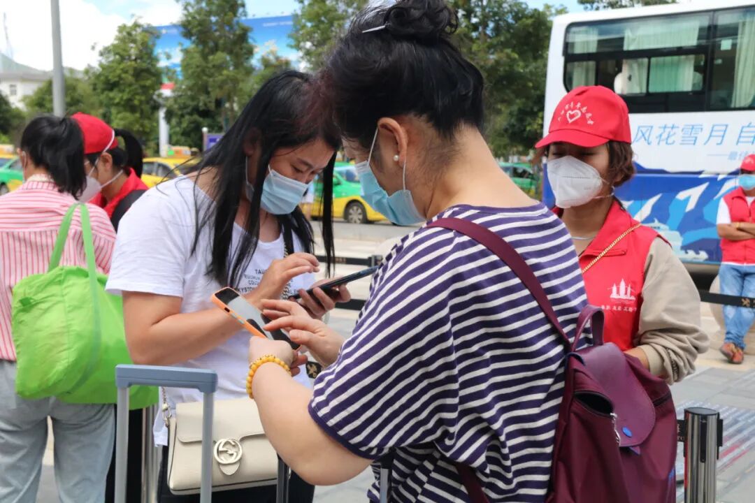 大理机场作为大理重要的交通枢纽之一,疫情防控工作也至关重要。在大理机场混检免费核酸采样点,记者看到医护人员、社区干部、志愿者等工作人员,顶着烈日,冒着酷暑,各司其职,正有序引导出站游客进行扫码、核酸采样工作。