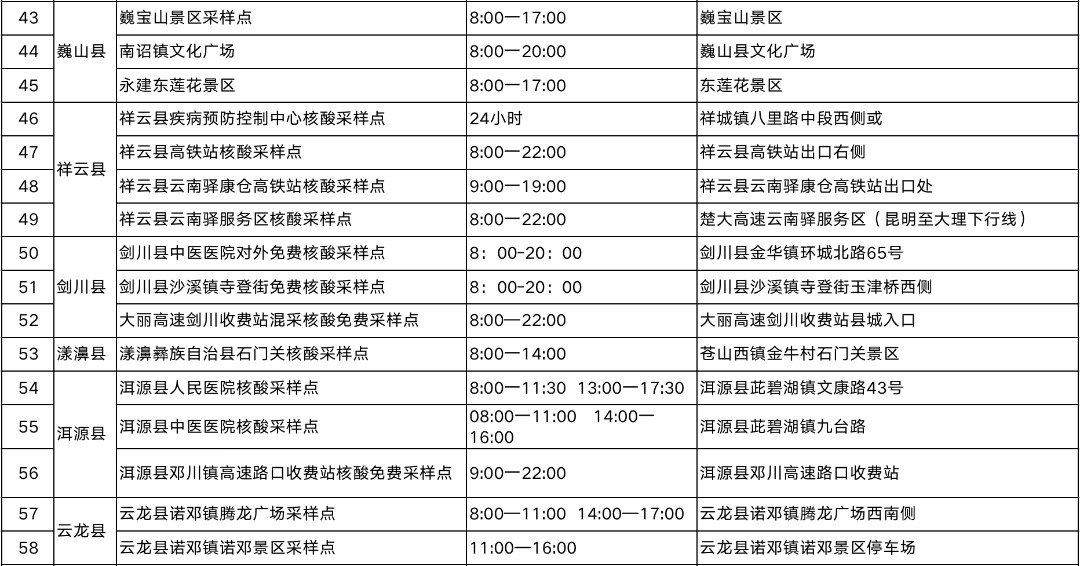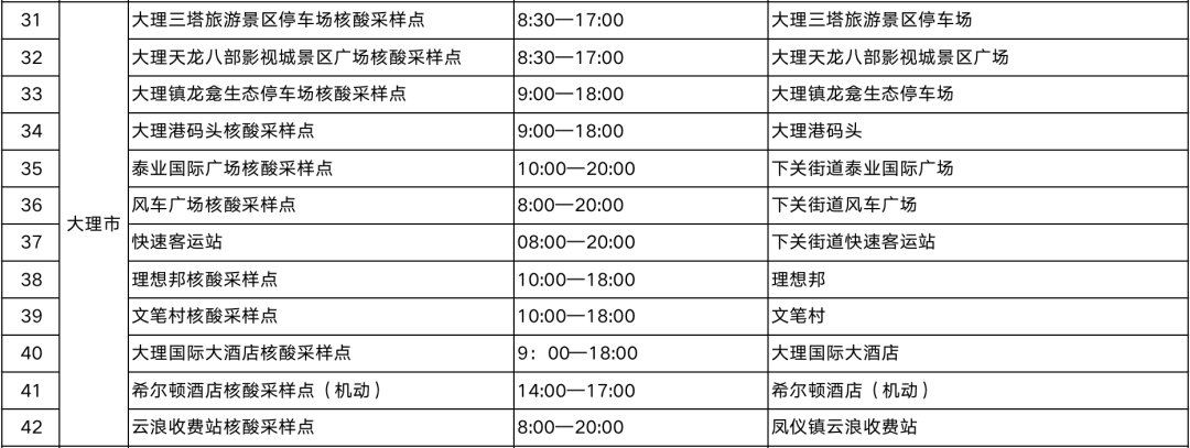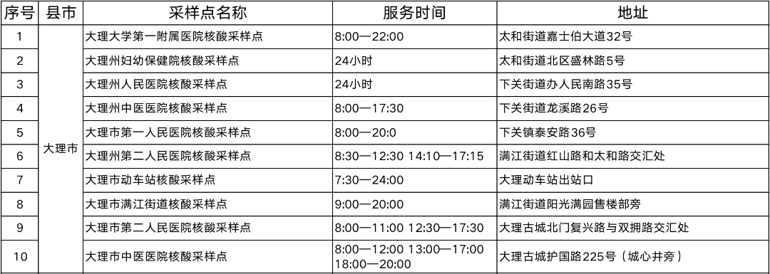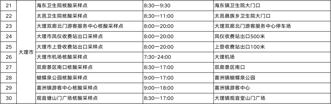 大理州暑期游客新冠病毒核酸免费检测采样点信息