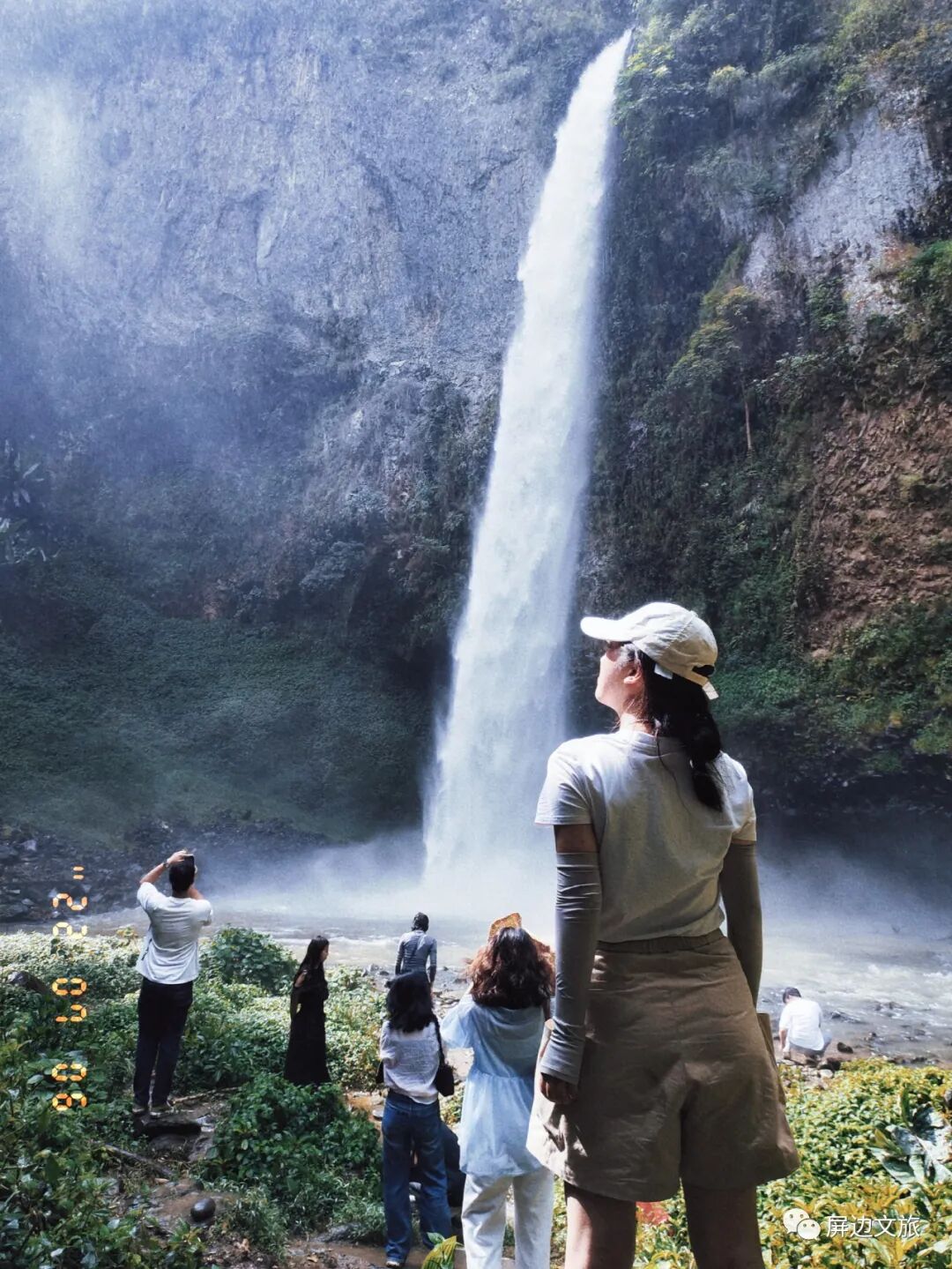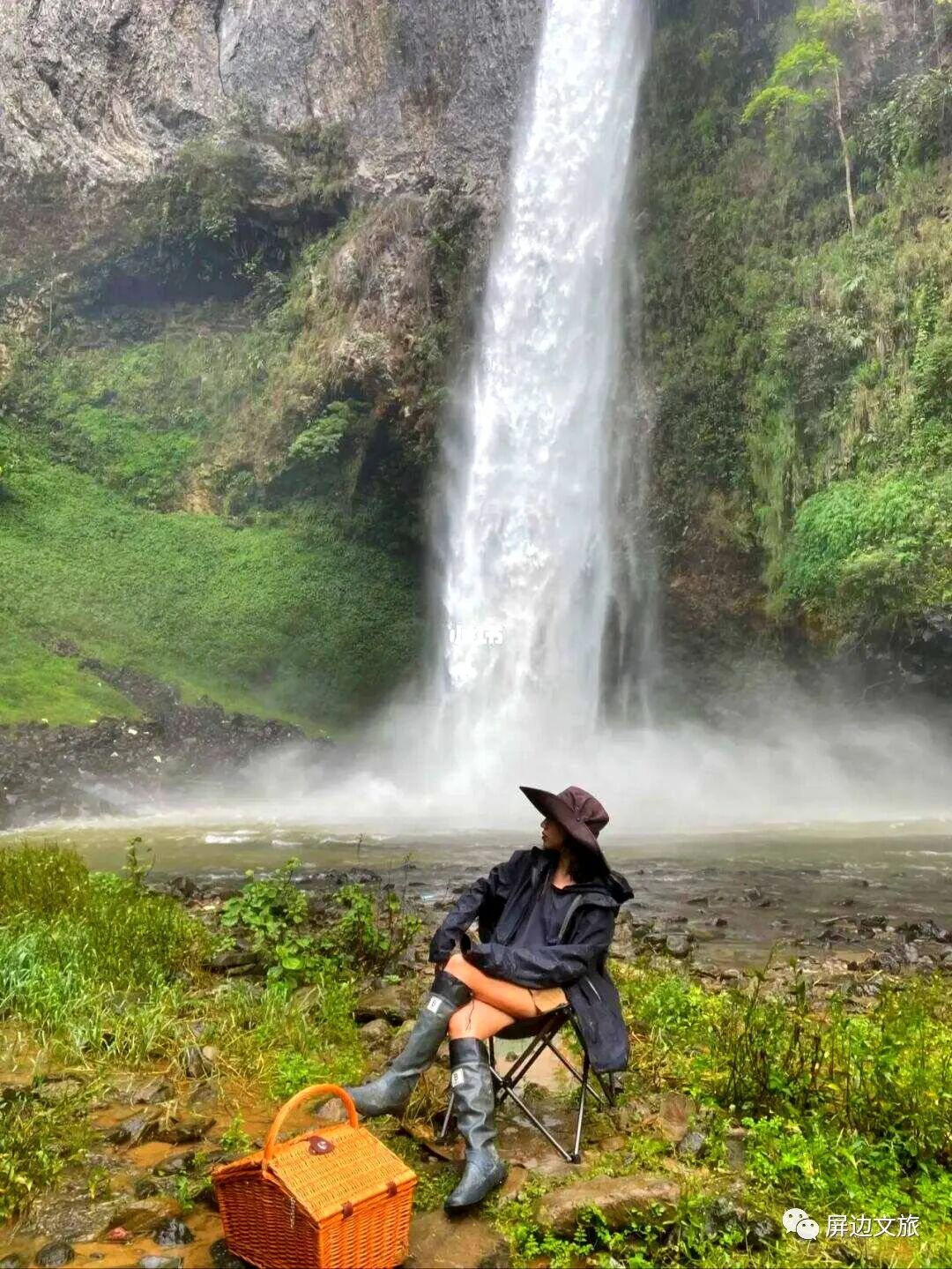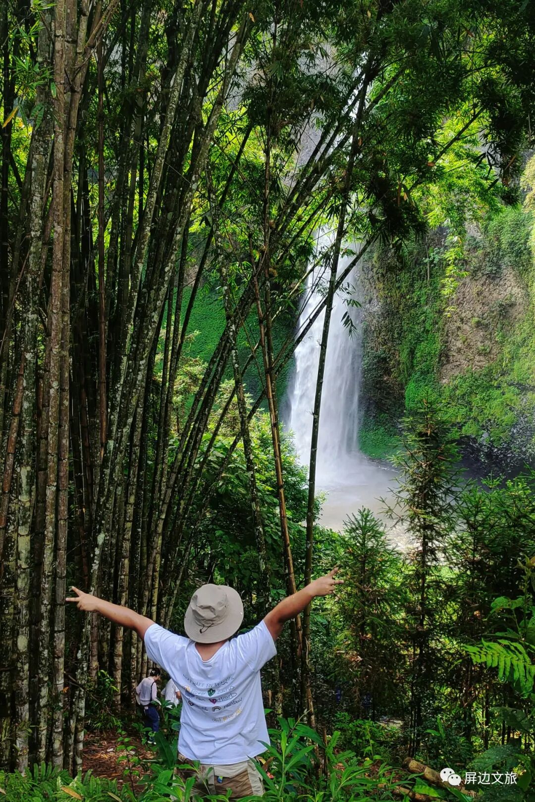 滴水大瀑布景区:位于屏边县滴水苗城西南侧、蒙屏高速出口右侧悬崖之下,紧临滴水苗城寨门日月广场。瀑布总高120余米,共分三层,其中主瀑布落差76米,瀑布为自东向西奔流的牧羊河被峙在河心的滴水层所阻挡,使河水激石咆哮,夺路而下,形成了高达百余米的水帘。远望滴水大瀑布,只闻水声轰鸣,响如滚雷。巨大的流水拧成一股飞泻直下,水花四溅,烟雾溟蒙,在阳光下,色彩缤纷,蔚为壮观, 是您感受“飞流直下三千尺”的绝佳之地,也是来屏边旅游打卡的必选之景。体验路线:滴水苗城寨门向西沿蒙屏二级路行500米即可到达,亦或从高速公路出口右转400米也可到达。