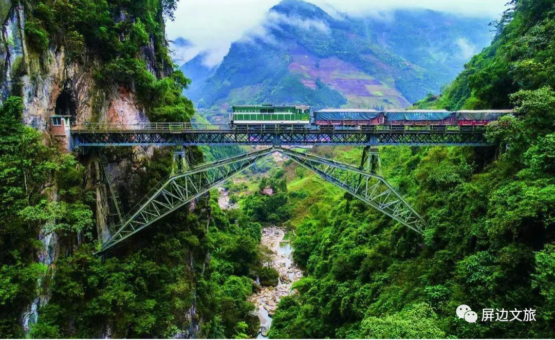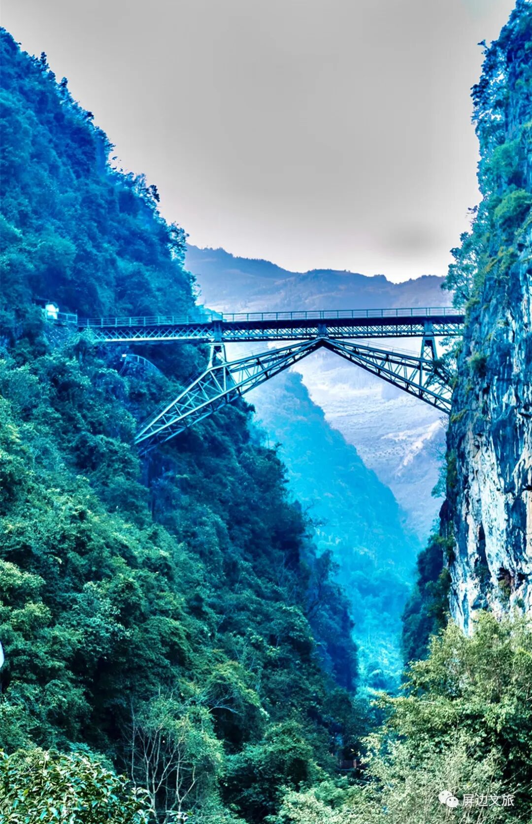 人字桥景区:亦称次南溪河铁路桥,又称为弓弩手桥、人字桥、昆河线135号桥,是滇越铁路线一座肋式三铰拱钢梁桥,该桥位于屏边县和平镇五家寨四岔河大峡谷119和120号隧道之间,是滇越铁路的标志性工程,也是研究滇越铁路及中国桥梁史的重要实物资料,被列入《世界名桥史》。大桥桥始建于1907年3月10日,由法国巴底纽勒工程建筑公司的工程师保罗·波登根据应用力学原理设计,并由其公司承建。桥长71.7米(包括与山体连接部分),宽4.2米,高102米,桥面离谷底深泓线高102米,全用钢板、槽、角钢、铆钉连接而成。1998年11月13日,被公布为云南省文物保护单位。2006年5月25日,被国务院批准列入第六批全国重点文物保护单位名单。人字桥景区是感受历史脉动的地方,也是触摸桥梁建造史的圣地,更是体验滇越铁路户外徒步探秘旅行的中心。体验路线:滴水苗城向东沿219国道行30公里至白寨,左转沿人白公路向北行25公里即可到达。