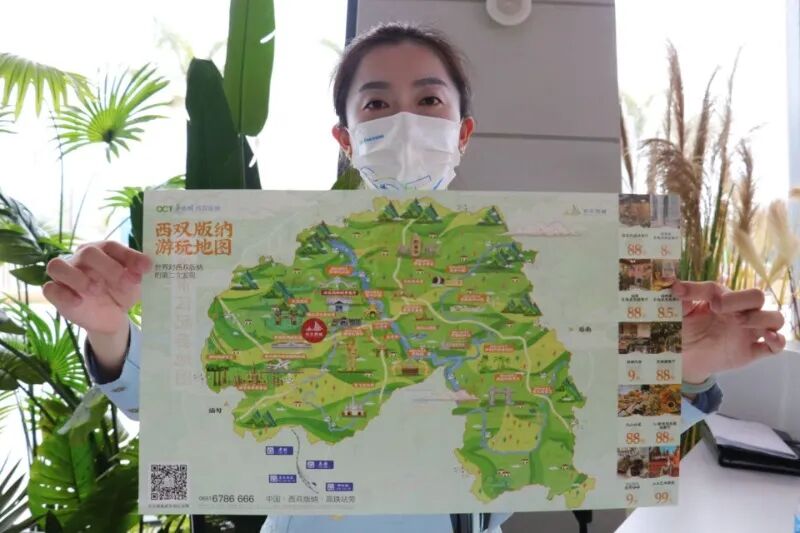 为了让游客更便捷地了解西双版纳旅游资源,体验当地美食文化和魅力,体验馆也为游客准备一份集生活、游玩、美食为一体的西双版纳手绘旅游地图,地图中不仅标注了医院、商超、水果市场等配套设施及旅游推荐景点,还有西双版纳华侨城与景洪市众多商家联动推出的优惠券,真正让游客实现一张地图在手,吃喝玩乐全都有的服务体验。华侨城工作人员介绍:“目前首批已推出10家商户的钜惠福利,之后我们还将为游客推出更多福利。”