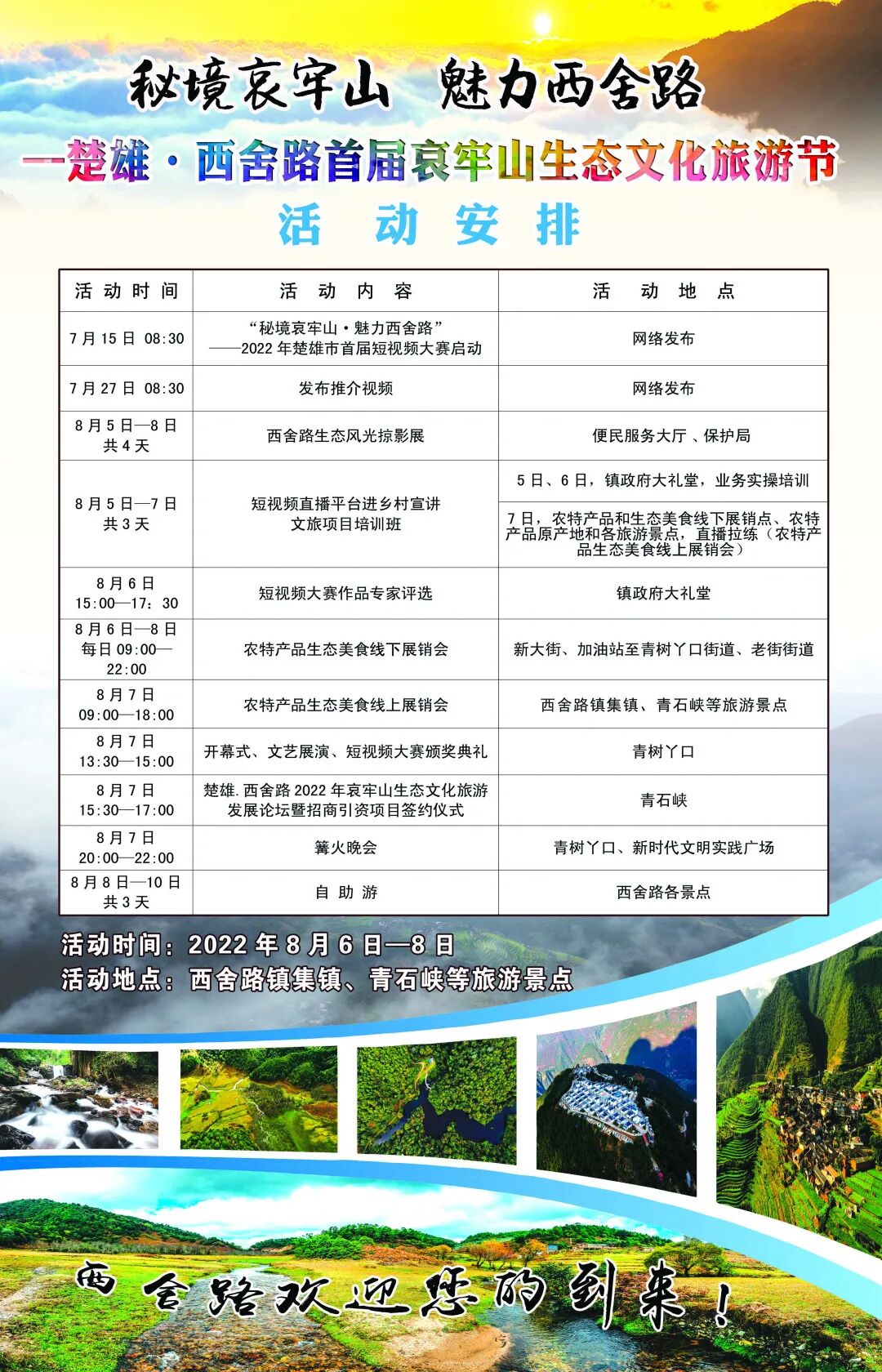 8月6日至8月8日,“秘境哀牢山 魅力西舍路”楚雄·西舍路首届哀牢山生态文化旅游节精彩来袭!(来源:楚雄市融媒体中心)