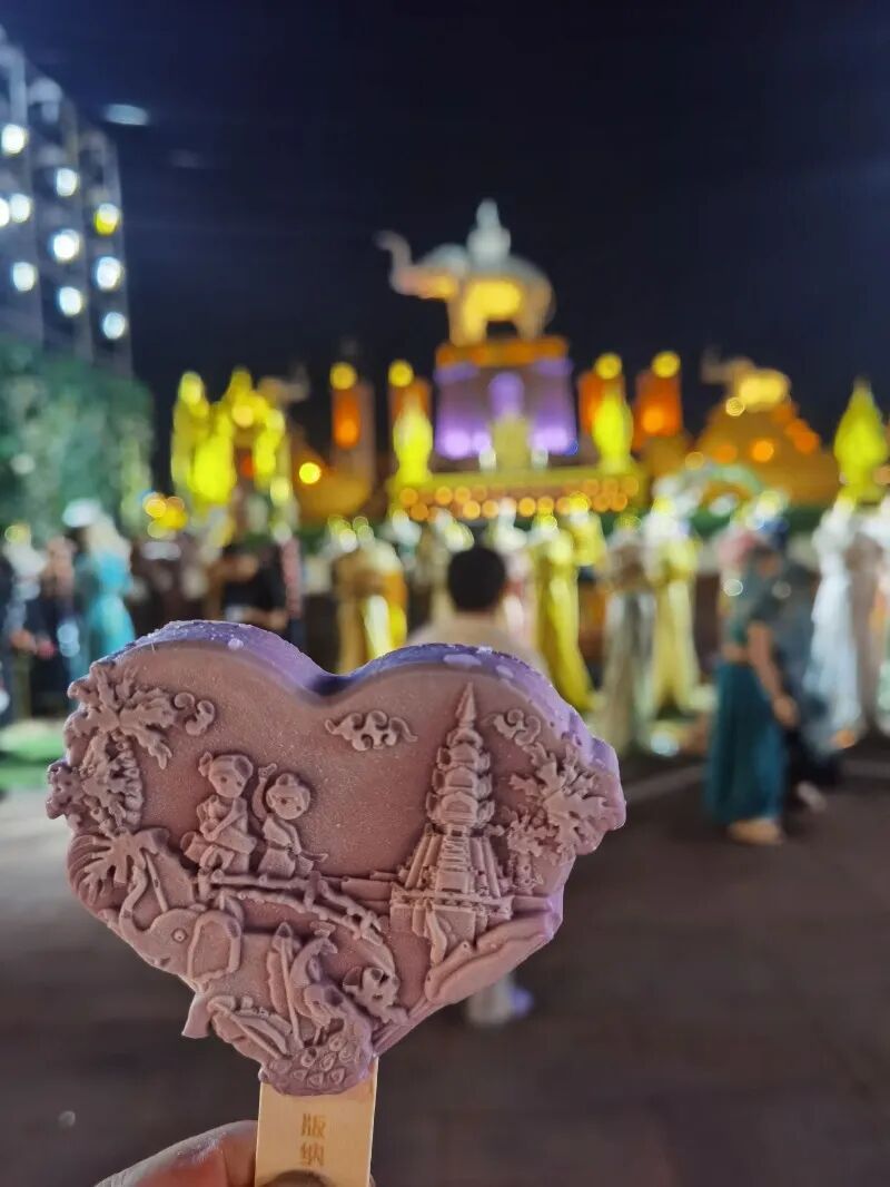 把雪糕制成你喜欢的模样,将西双版纳具有代表性的元素浓缩在小巧的雪糕之中,以动、植物卡通化的形象作为雪糕外形,凸显西双版纳热带雨林植物王国、动物王国的特性。3D版的大金塔、立体的大象、孔雀,让小小的雪糕带你遨游西双版纳,在芒果、榴莲、草莓、蓝花楹等口味中感受水果的酸甜,消减夏日的火热。在西双版纳告庄西双景、野象谷景区、火车站站前广场华侨城雀之翎生活体验馆都可以买到文创雪糕哦!