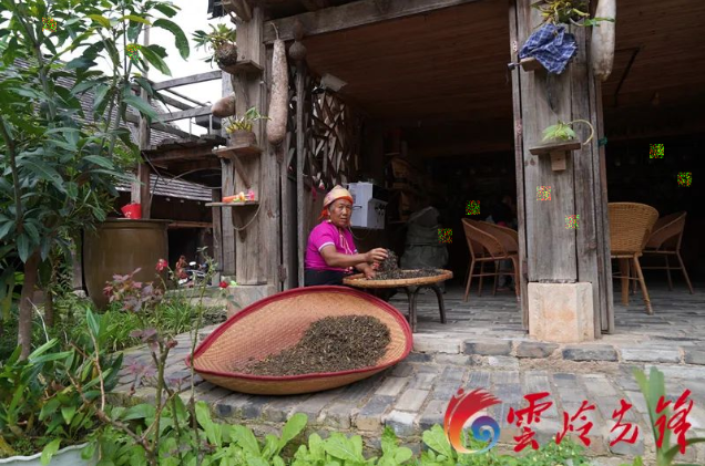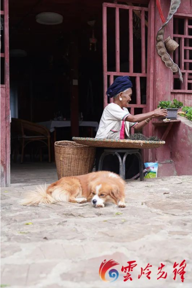 几天前的一个早晨,记者走进景迈山翁基村时,一位80多岁的老人正坐在屋檐下捡茶叶,屋顶的一只小鸟没站稳,掉在了装茶的簸箕里。