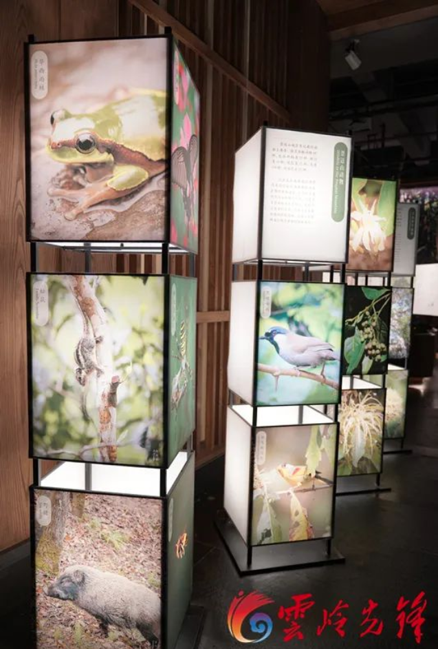 “申遗三要素”遥相呼应,造就了景迈山丰富的生物多样性。在景迈山古茶林文化景观申遗“四中心”展厅,生物多样性得到了完整呈现:篦齿苏铁、翠柏、红椿、金荞麦等14种我国重点保护野生植物与茶树共生,野生动物更是不计其数。