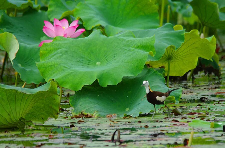 在傣族园景区,除了体验泼水的乐趣、感受傣家风韵和非遗魅力外,还能赏花观鸟。傣族园中的荷花湖又称龙得湖,是一个天然湖泊,每年的5月至8月,千亩荷花争先绽放,湖区良好的生态环境为鸟类繁衍提供良好的栖息地,根据爱鸟人士的调查研究,这里共记录到鸟类56种。游人可以乘坐湖上小火车赏花、乘船观鸟,用手中的手机、相机留住美好的瞬间。