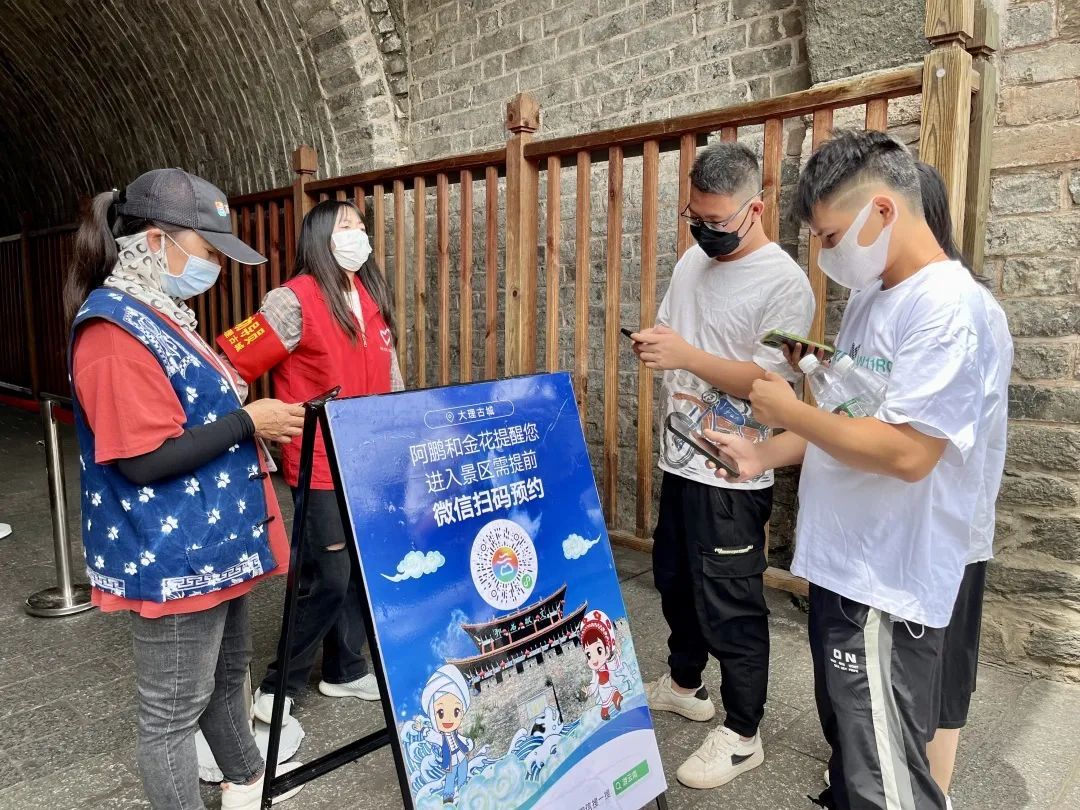 暑期以来,游客增多,为进一步做好疫情防控工作,确保游客放心安全游览,大理古城景区疫情防控再升级。在引导游客“预约、错峰、限流”的基础上,增设了一批志愿者,配合暑期的疫情防控工作,新增多个核酸检测采样点,筑牢景区疫情防控监测网。