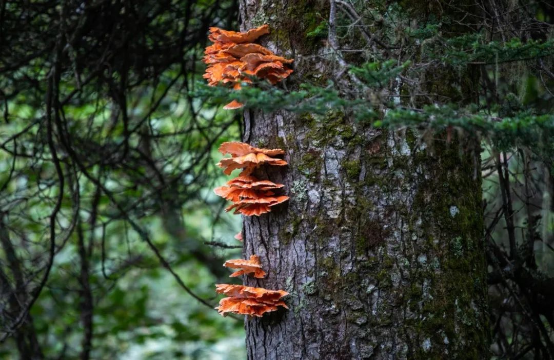 雨后的森林湿润、凉爽,路旁树下常常可以看到刚刚冒出来的菌子,菌盖还没有展开,正是最鲜嫩的样子。