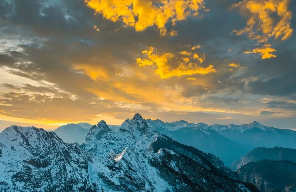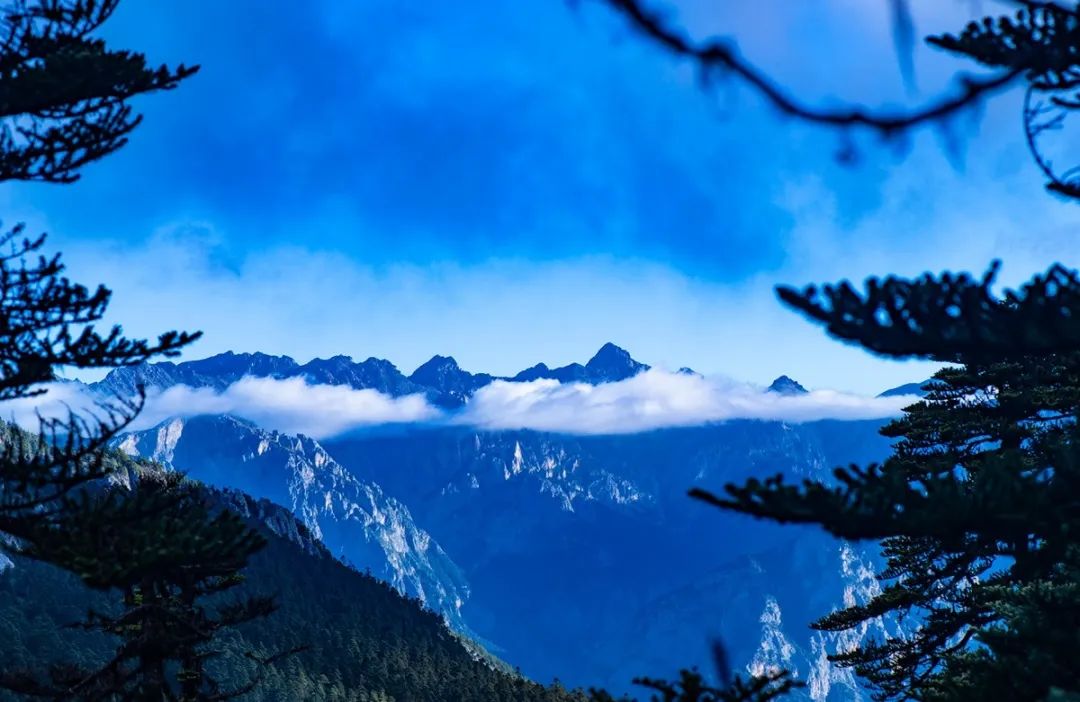 但雨季与雪山组成的惊喜,却不仅只是露真容而已。多变的云层并非总遮挡在雪山与众人之间,有时它们也是雪山背后最迷人的背景,云幕与光线,让雪山的轮廓变得更加壮美。