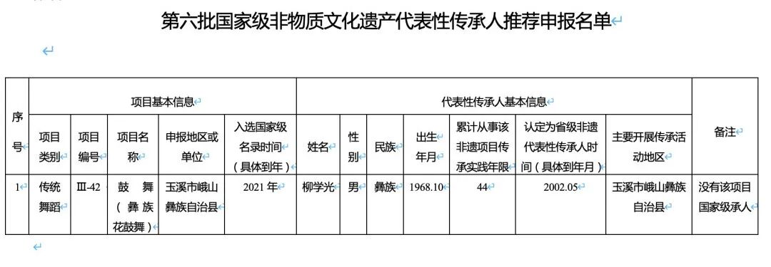 玉溪市文化和旅游局关于玉溪市第六批国家级非物质文化遗产代表性传承人推荐名单的公示