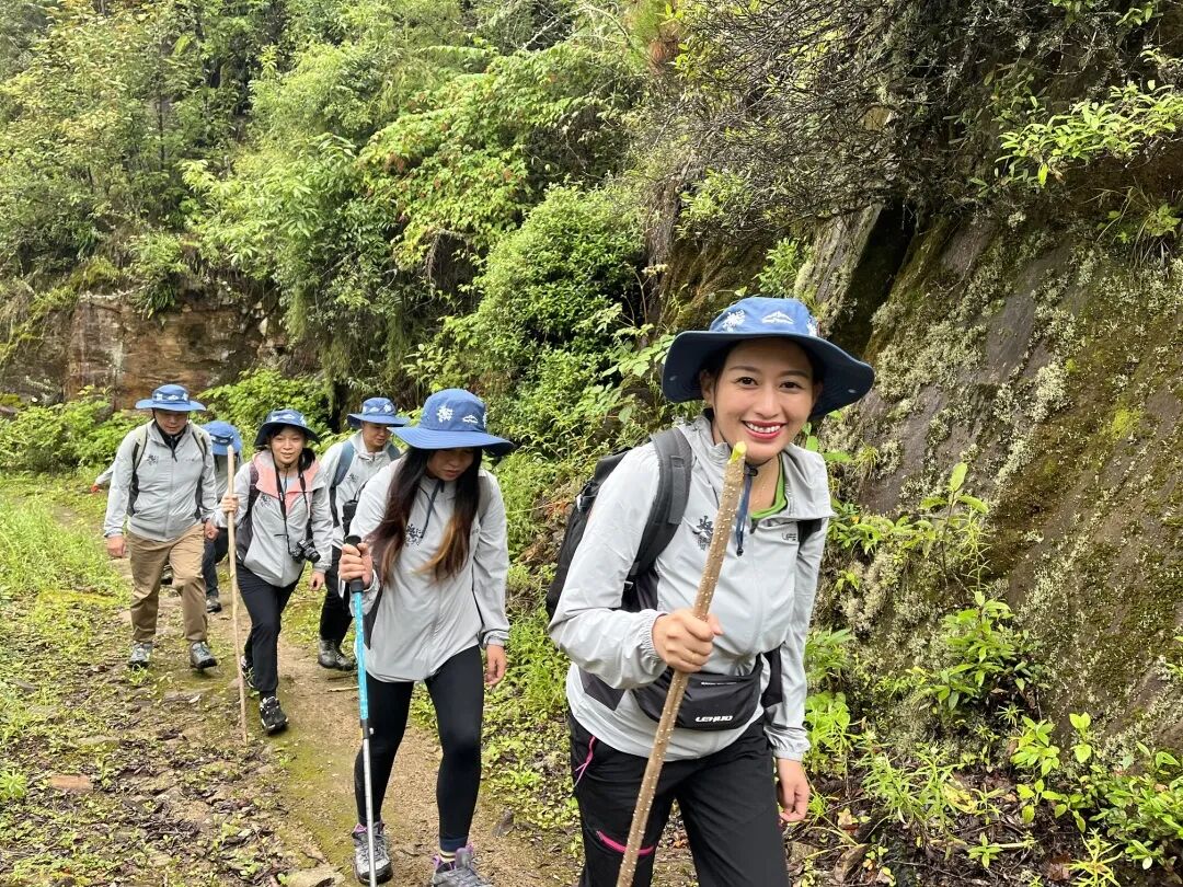 登山徒步的情侣们从上午6点半从老姆登景区、知子罗老城驱车启程,7点半到达黄连基地。在金飞豹一行的带领下,从黄连基地开始徒步,沿途山高坡陡,部分道路狭窄、崎岖,14点左右到达湖边。