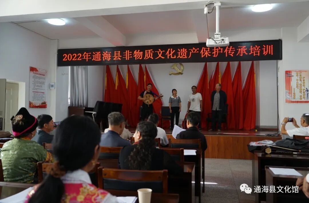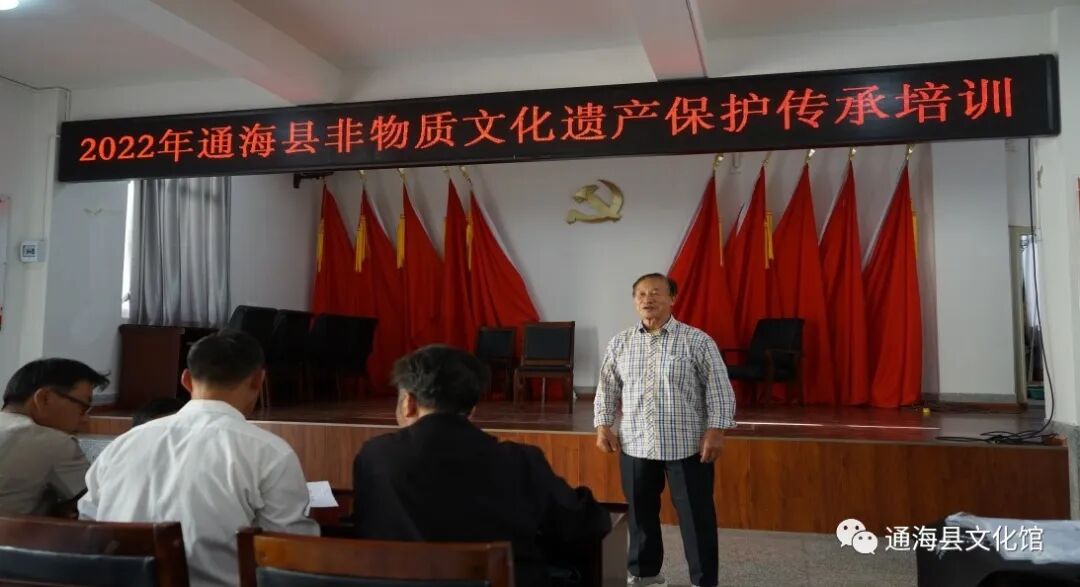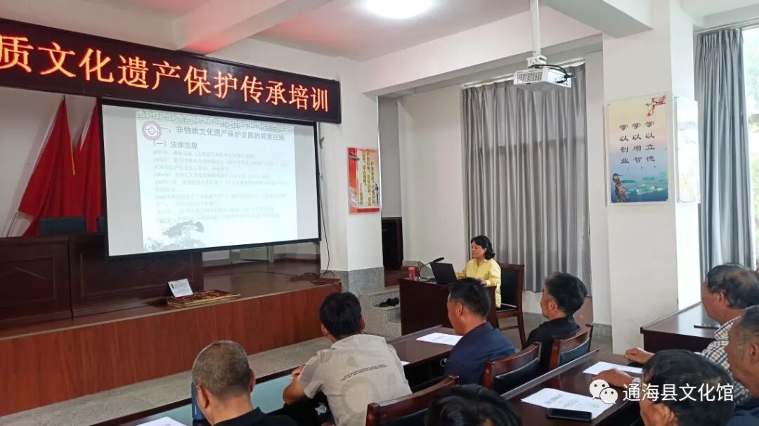 非遗保护工作人员李琼从非遗法律法规知识、传承人权利义务、回顾通海县非遗的发展历程、传承人申报材料的撰写制作、传承人绩效考评材料,以及传承人在活动中如何收集材料等方面进行了详细讲解,并认真传达学习《玉溪市市级非物质文化遗产项目代表性传承人认定与管理暂行办法》。