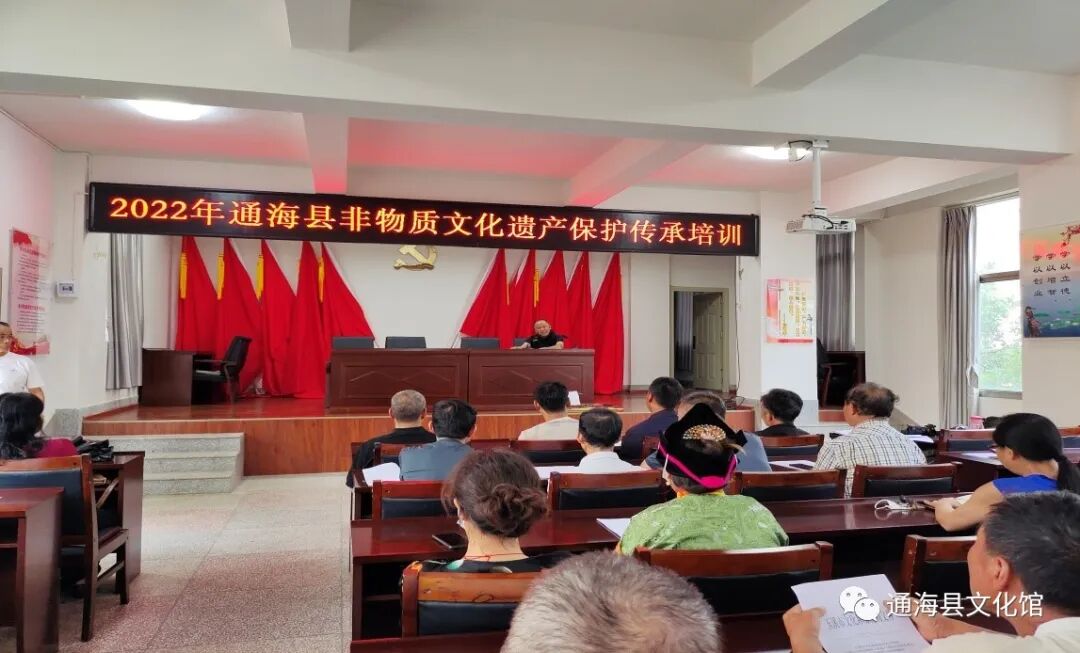 为认真贯彻落实中央和省委省政府《关于进一步加强非物质文化遗产保护工作的意见》,进一步加强玉溪市通海县非物质文化遗产的保护传承工作,以及对非物质文化遗产项目和代表性传承人的管理,提升通海县代表性传承人的责任意识、业务素质和保护传承水平,夯实非遗保护传承发展基础。2022年8月5日,由通海县文化馆(通海县非物质文化遗产保护中心)主办,秀山街道文化站承办的2022年通海县非遗保护传承培训在秀山街道文化站成功举办,全县非遗项目代表性传承人、各乡镇文化站工作人员九十余人参加了培训。