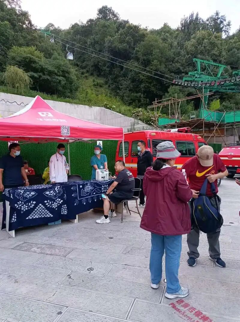 (医务人员为游客检查身体)