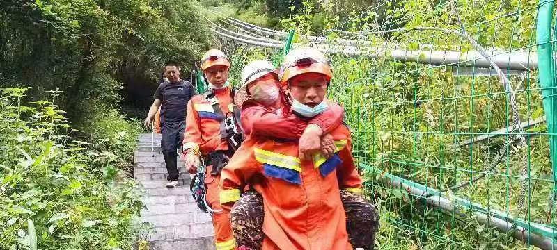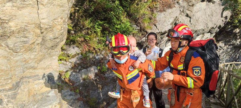 (消防救援人员护送游客下山)