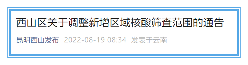 经专家组研判,根据西山区应对新型冠状病毒肺炎疫情工作领导小组指挥部统一安排,决定调整新增西山区核酸筛查区域。现将有关事项通告如下: