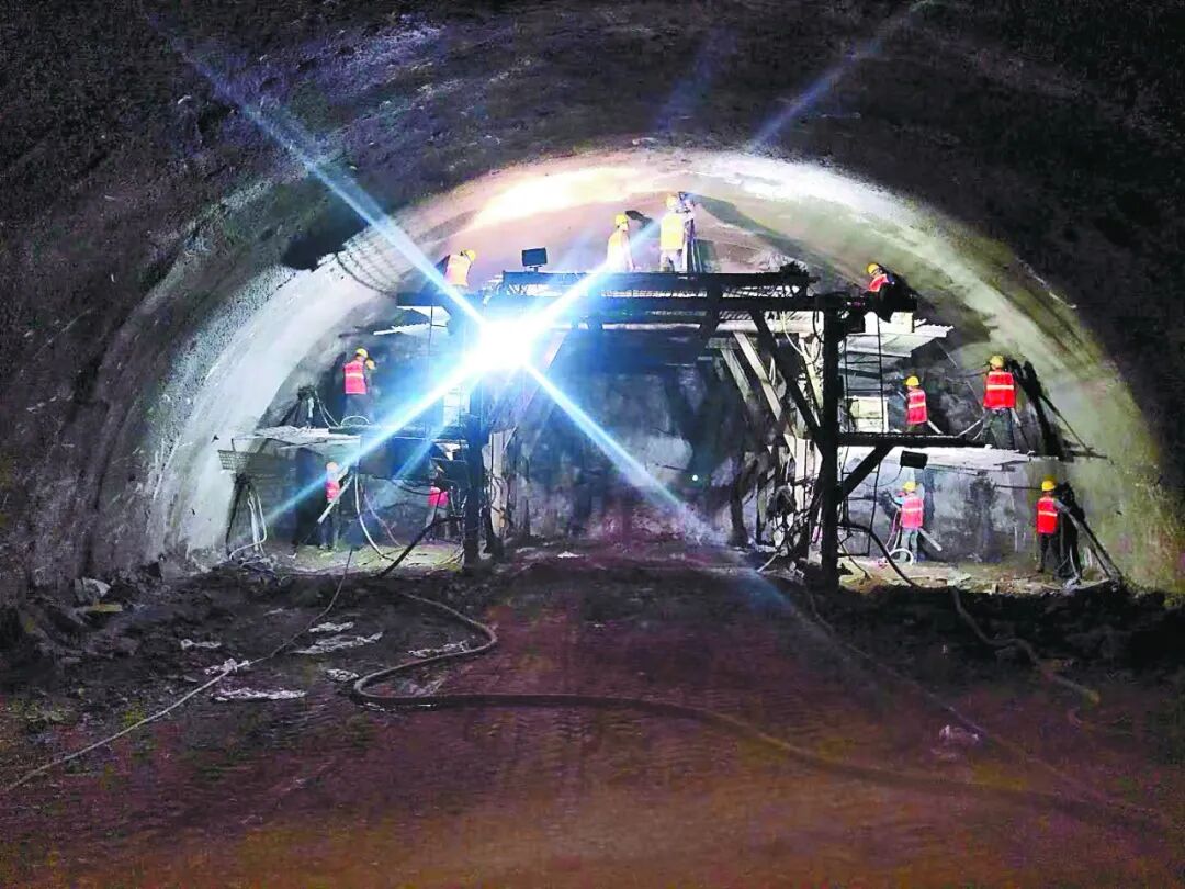 由中建七局承建的营盘山隧道是华丽高速公路重大控制性工程,为分离式双向4车道隧道,左线长11272米,右线长11310米。隧道自2016年12月进洞施工以来,先后克服断层破碎带、突泥涌水、坍塌、岩爆、地热、瓦斯、软岩变形等诸多难题,经过2000多天的日夜奋战和2000余名参建者的努力,顺利实现贯通。
