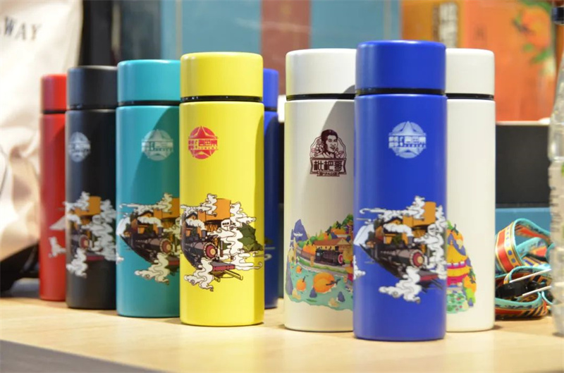 建水古城小火车临安站内,有一家“文创+茶饮”融合的文创体验店,冰箱贴、明信片、笔记本、帽子、保温杯、小火车logo徽章等应有尽有,实用又美观。你可以购买这些文创产品的同时,也将关于建水小火车的记忆带回家,或者选购一个养生达人必备的保温杯、喝一杯醇正的野山茶,再或者买一支以火车头作为设计元素的雪糕。