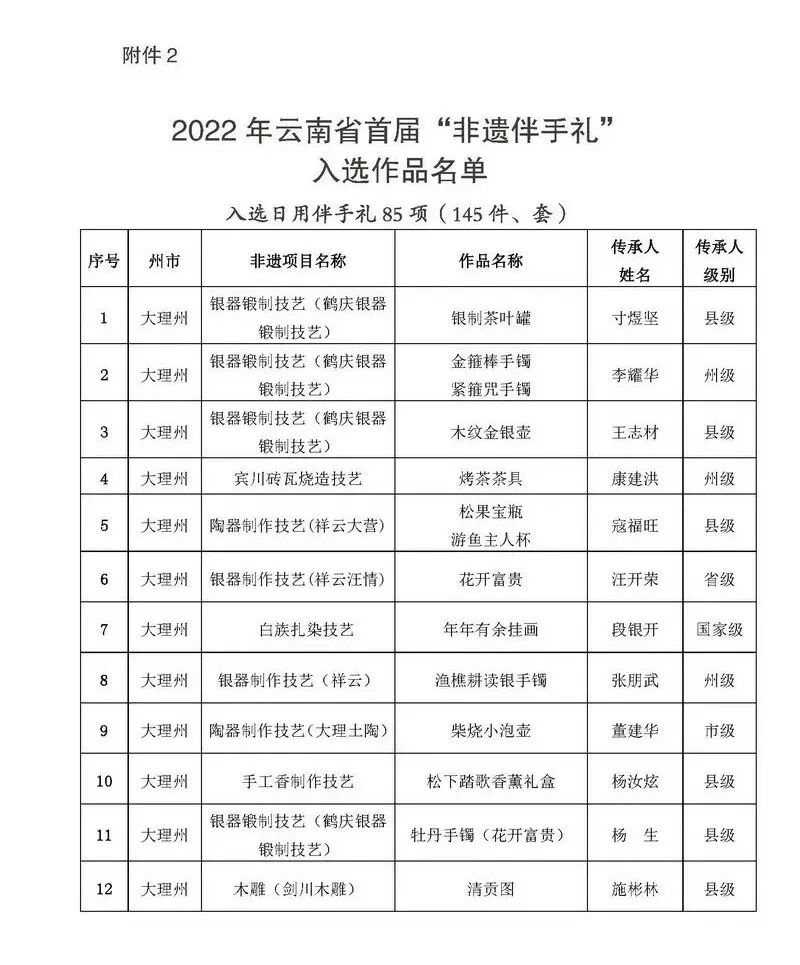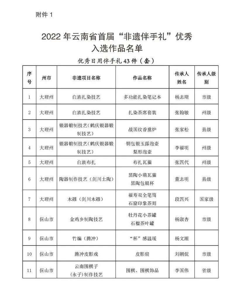 1.2022年云南省首届“非遗伴手礼”评选优秀入选作品名单