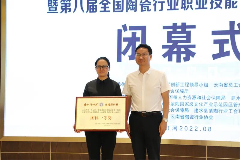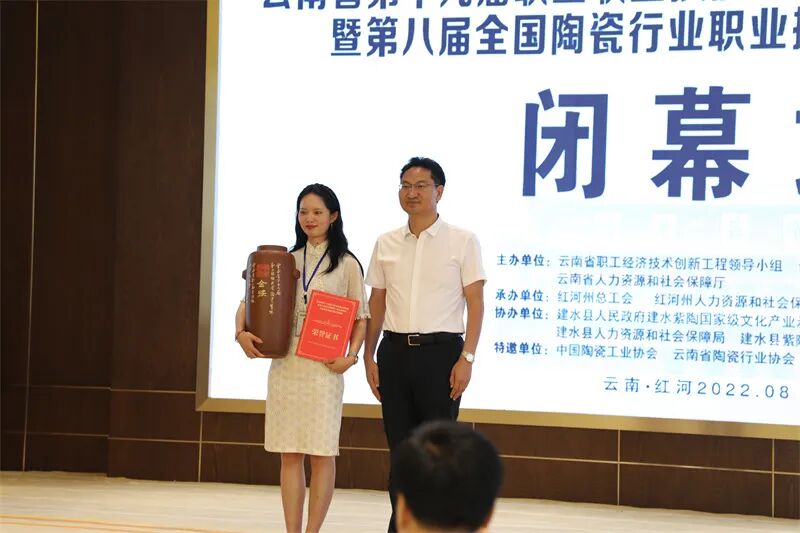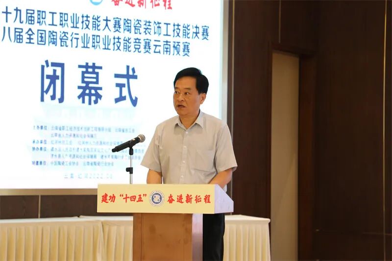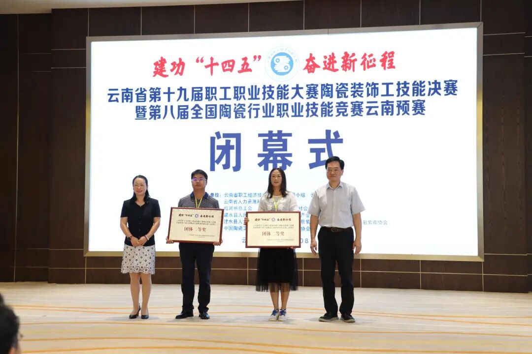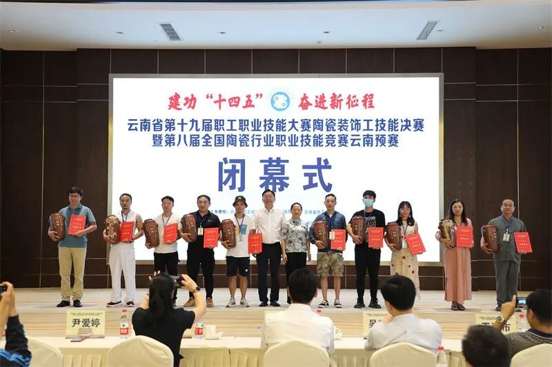 8月24日,云南省第十九届职工职业技能大赛陶瓷装饰工技能竞赛决赛暨第八届全国陶瓷行业职业技能竞赛云南预赛圆满结束。红河州委常委、州委宣传部部长字振华,红河州政协党组成员、副主席、州总工会主席张艳梅,红河州总工会党组书记、常务副主席姜云,中国陶瓷工业协会常务副理事长吴越申,红河州人力资源和社会保障局党组成员、副局长尹爱婷等领导出席闭幕式并为获奖选手和团体颁奖。