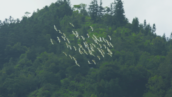 它们时而追逐嬉戏,时而驻足树林,如雪片般落在树梢,不停地展示它们曼妙的身姿,呈现出一副自然和谐的生态画卷。