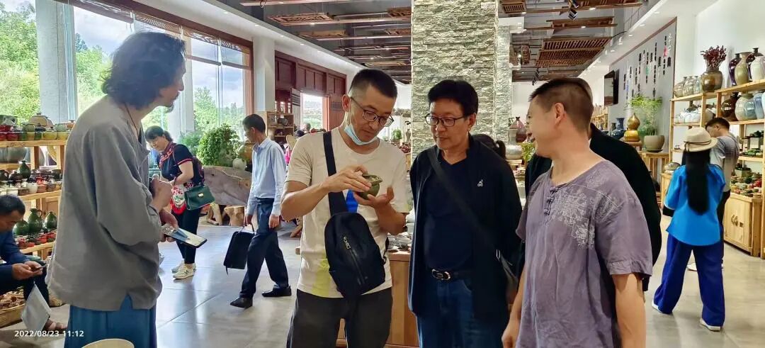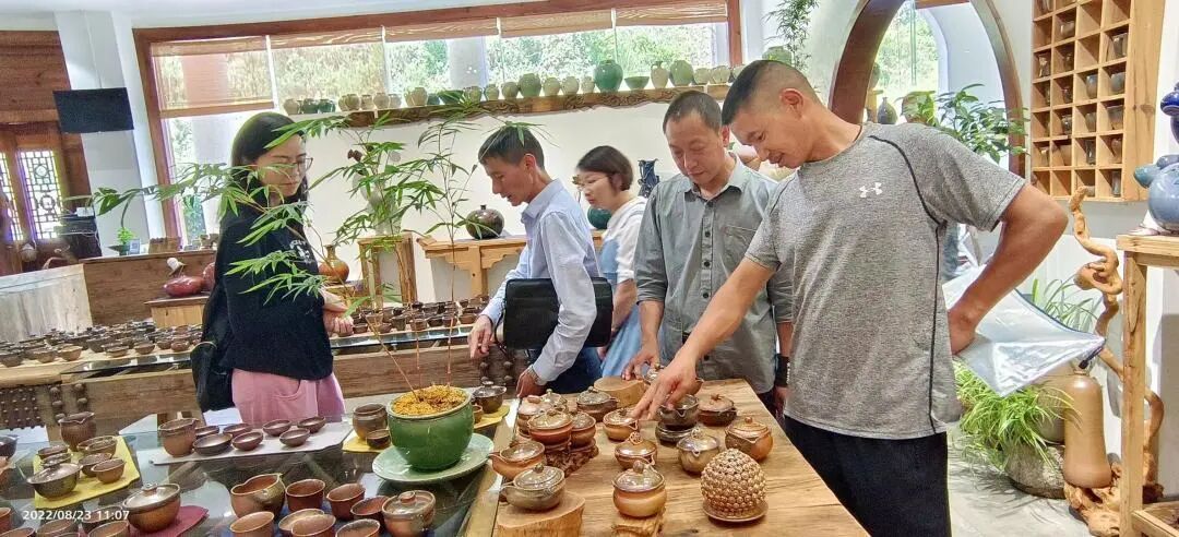 现场观摩学习阶段,参训人员参观了白塔山陶器厂、舒氏陶艺、华宁陶博物馆和部分制陶企业。近距离感受华宁陶近年来通过充分挖掘陶瓷文化内涵、开展生产性保护、活化人才传承体系、推动陶瓷文化与旅游融合发展带来的可喜成果。走进华宁县电商产业园,在讲解员的引导下,参观了党建大屏、现场直播区、平台区、部分当地特色农产品及手工艺品展示区、入驻企业孵化区。了解到,近年来,为拓宽华宁陶销售渠道,适应新形势下催生的“宅经济”消费模式,2022年,华宁县抓紧互联网直播风口,以市场为导向,积极探索“华宁陶+电商+直播”的营销模式,发力“在线经济”,为华宁陶插上直播“云翅膀”,借势推动华宁陶产业转型升级。充分利用全媒体宣传渠道,不断把“流量”变为“销量”,从而提升华宁陶市场占有率,增强品牌效应。目前,华宁县打造华宁陶官方直播平台2个,企业直播平台10余个,直播带货收入达800余万元。