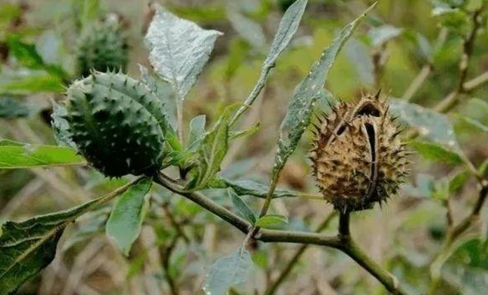 曼陀罗的果实呈鸡蛋大小,外表有刺,误食会出现呕吐、晕厥、血压下降、昏睡等症状,严重者可致死亡。