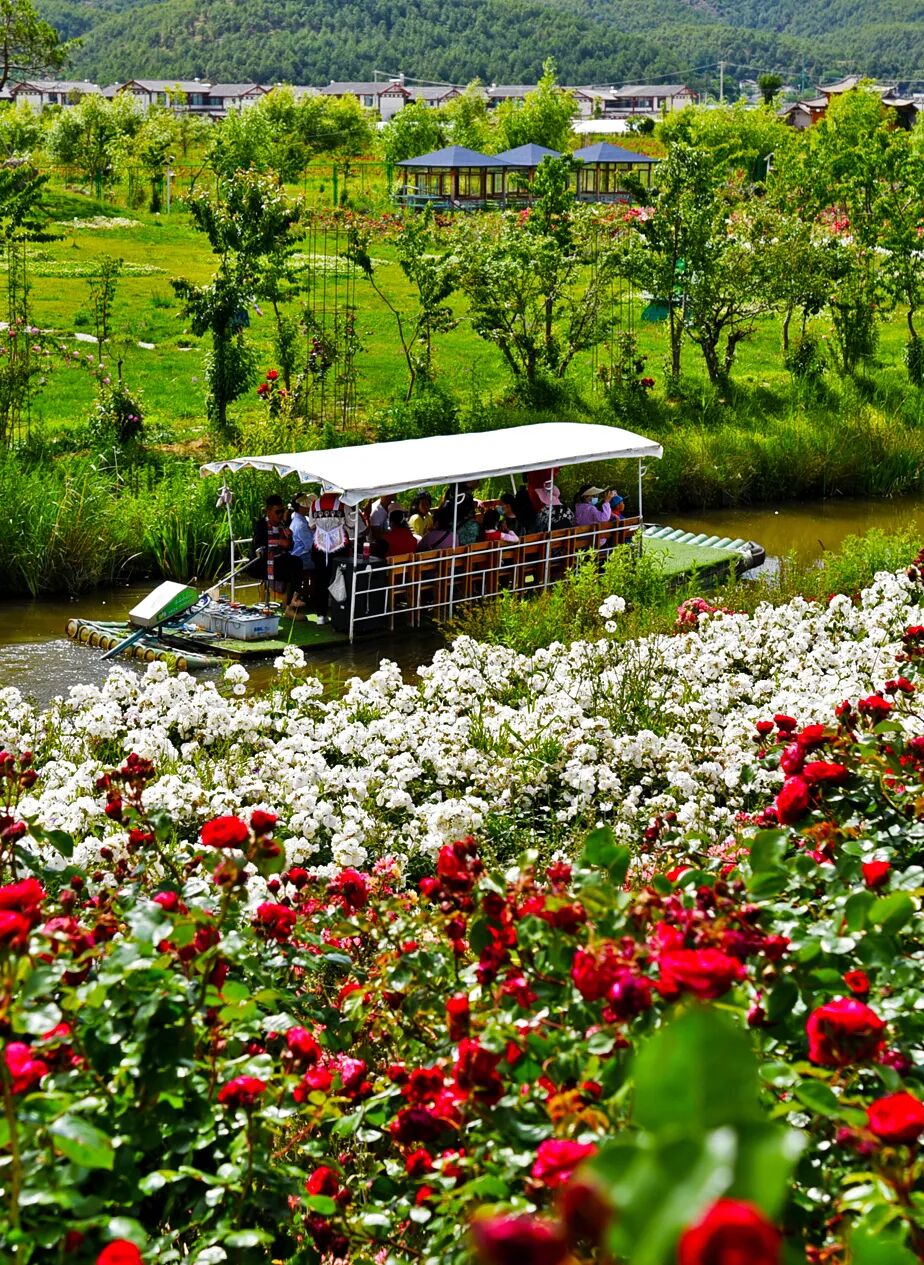 木金江所在的均良下村主动拆除违章建筑、退出了拉市海核心区,在“烂泥巴地”上建设玫瑰庄园。依托玫瑰观赏、骑马、民族文化体验及玫瑰花产品加工、销售,大力发展乡村旅游,以花为媒,美了环境、富了百姓,探索出了一条增收致富和环境美化双赢的路子。