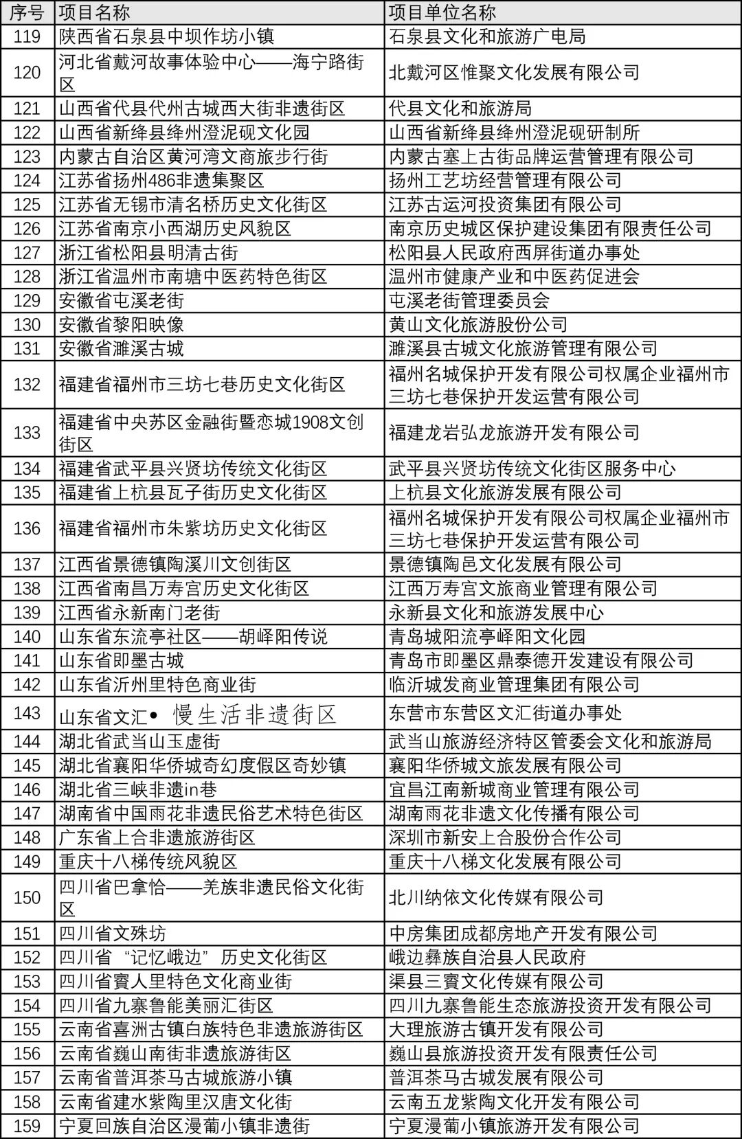 “全国非遗与旅游融合发展优选项目”遴选,践行开放共享、尊重互利、科学创新、弘扬价值的工作原则,得到全国各地景区、小镇、街区、村寨运营主体的高度关注和积极参与,历经二个月共同努力,从方案宣介、组织动员、自主申报、合规性审查、专家评审、领导小组会审,全过程坚持公平公正、阳光运作,有效促进了非物质文化遗产社会化保护,既是发现、培育非遗与旅游融合发展优秀项目的过程,也是整体推进以文塑旅、以旅彰文的过程,取得良好的阶段性成效。现将拟入选“全国非遗与旅游融合发展优选项目名录”的200家单位向社会公示,公示期间(2022年9月3日—9日),如有异议,请以书面方式向中国非物质文化遗产保护协会反映。