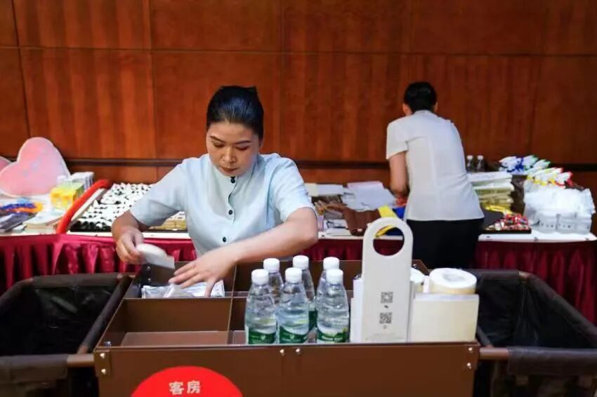 本次竞赛设置了前厅服务(含英语)、客房服务、中餐服务、西餐服务四个项目,竞赛内容涵盖时政、法规、业务等理论知识笔试,现场操作及突发事件处置等。
