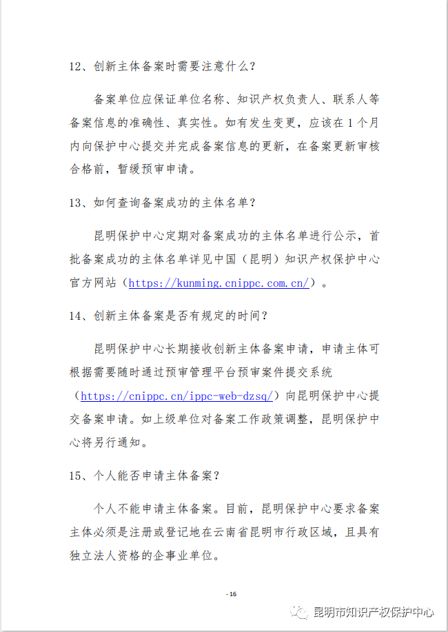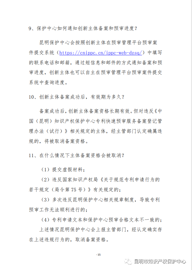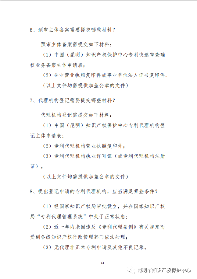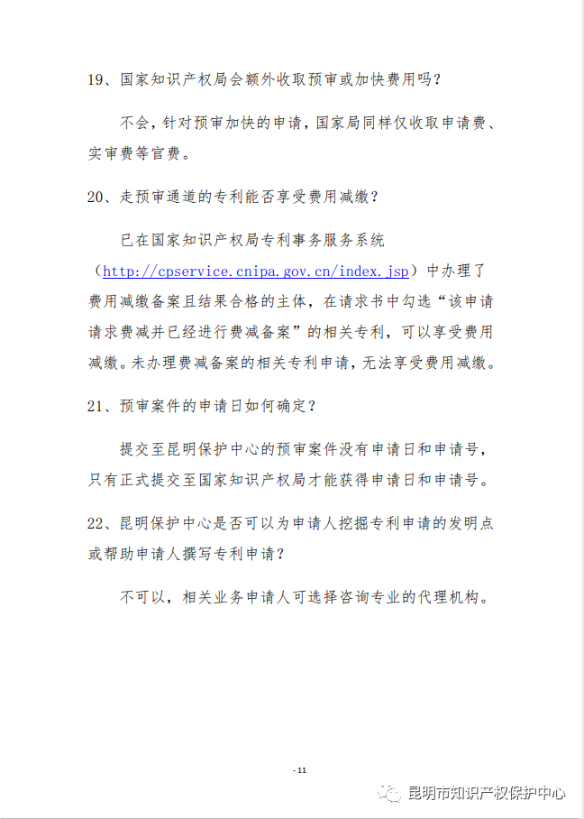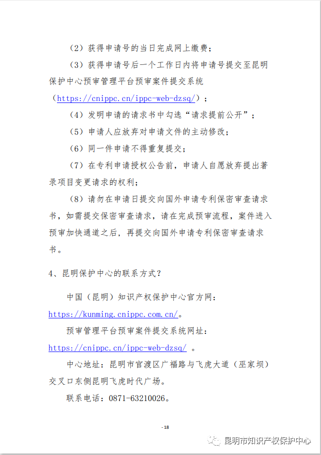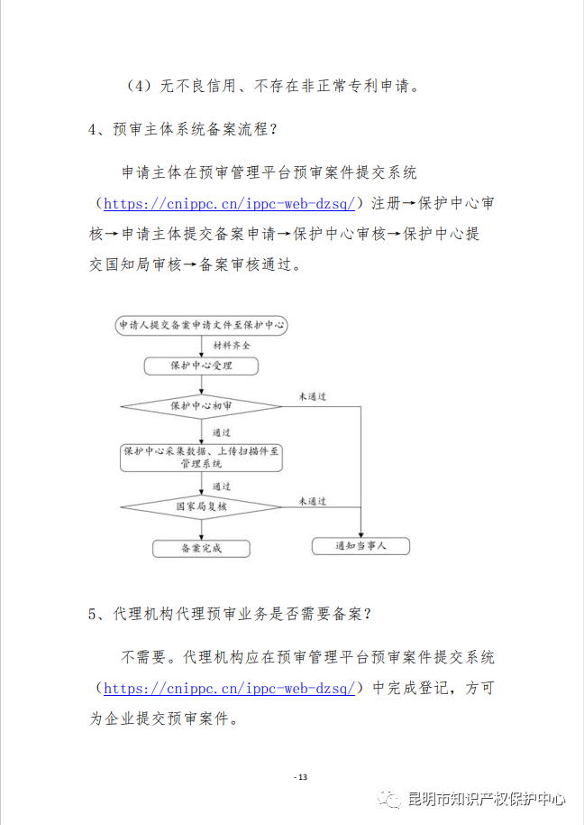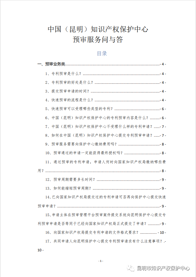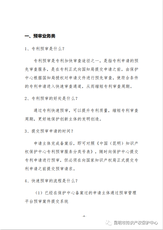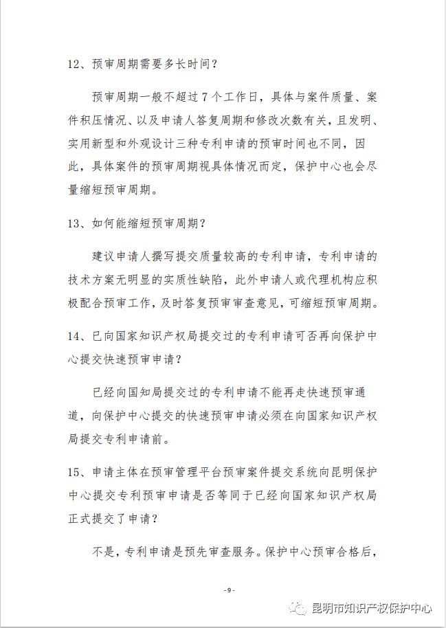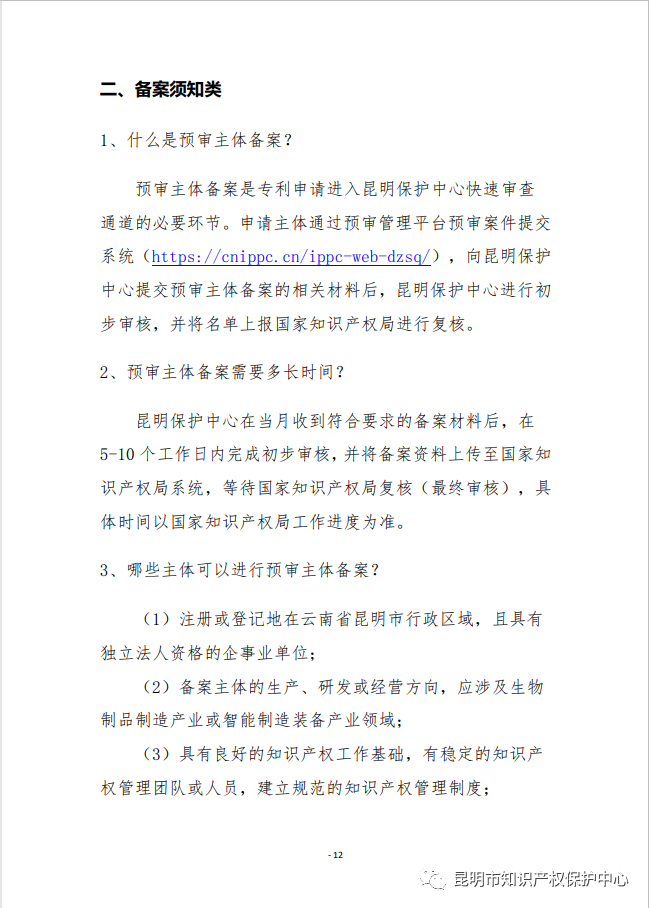 中国(昆明)知识产权保护中心预审服务问与答 2022-09-06 20:04 昆明市知识产权保护中心 0 专利预审是什么?备案要准备什么内容?关于知识产权预审你需要了解的都在这里!!! 来源 昆明市知识产权保护中心 责编 王楚云 审核 华芳