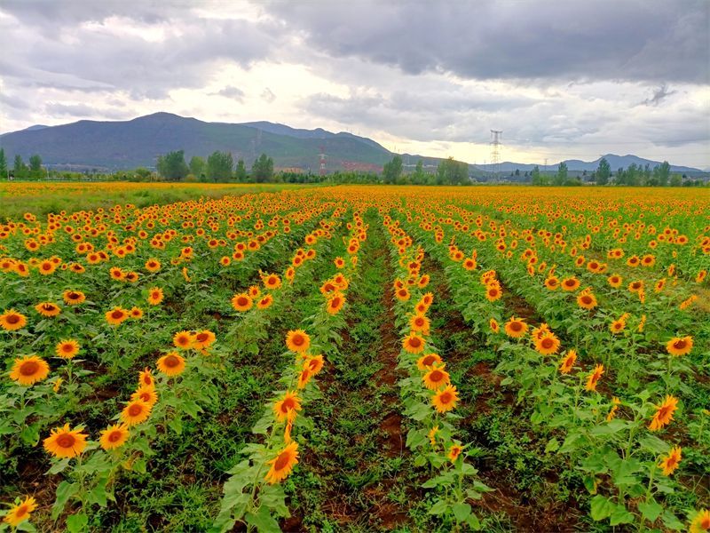白露时节,丽江不少田间都开满了金灿灿的向日葵。我想,较之米黄的桂花,金黄的向日葵更能代表金秋的颜色。一朵朵呈圆盘状的向日葵,活像一颗颗小太阳,发出金色的光彩,映得大地光华璀璨,也映得花旁的人脸面容灿烂。向日葵,花盘托着果实,花瓣绕着果盘,是果与花相辉互应的美,是含有丰收喜事的饱满的美。