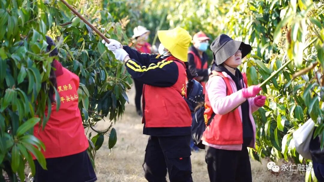 说起效益,芒果种植基地负责人冯通很有信心,这得益于独特的光热资源孕育出甜度高、芳香细腻的永仁芒果,更得益于今年芒果大面积开花时面临雪灾考验,全县1000余名党员干部组成志愿者服务队对芒果树进行“压花”,让果树在春分节令前重新开花结果。